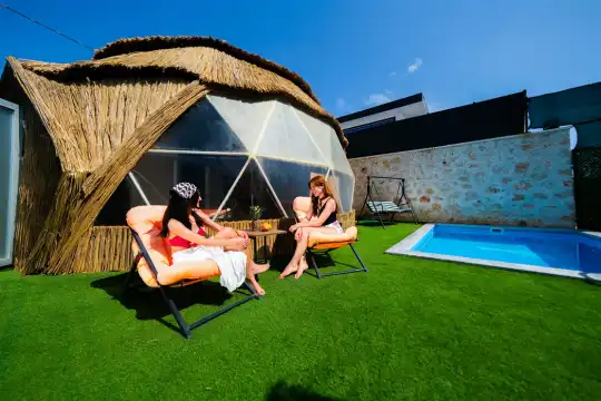 Tierra Big Dome, Kalkan Patara'da bulunan, çift odalı ve 4 kişilik kapasiteye sahip tatil villasıdır. Patara manzarasına sahip olan bu farklı tarzdaki döşenmiş dome, 4 kişiye özel modern bir konaklama deneyimi sunmaktadır. Muğla'ya bağlı Kalkan Patara'daki bu özel dome villa, muhafazakar çiftler için unutulmaz bir tatil deneyimi sunmaktadır.