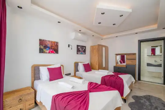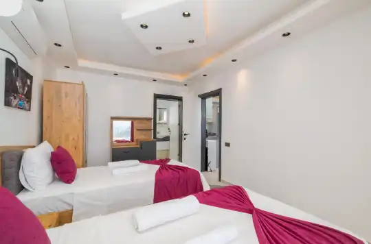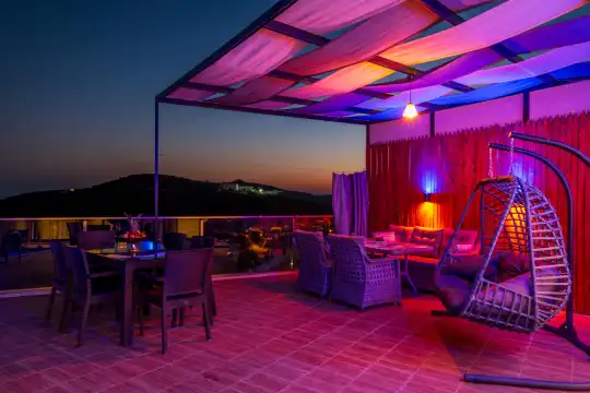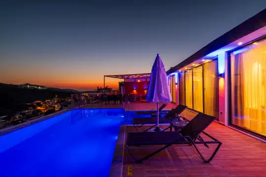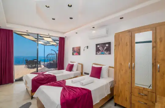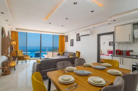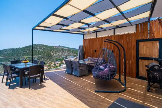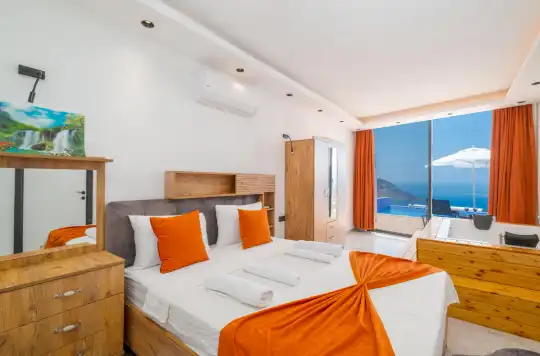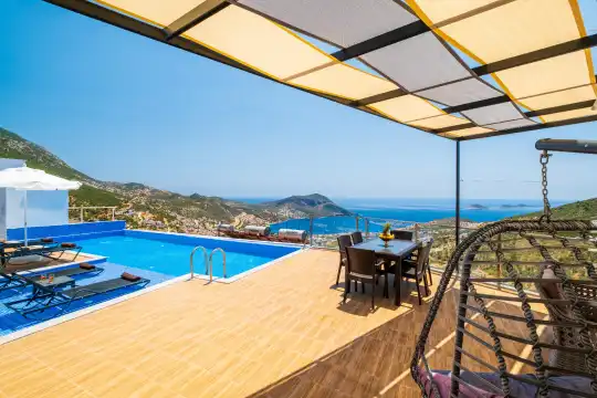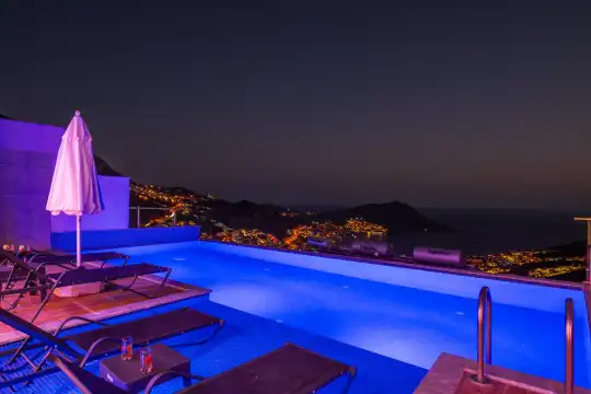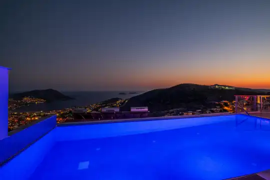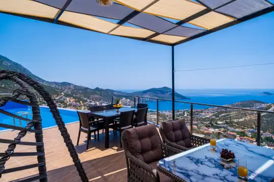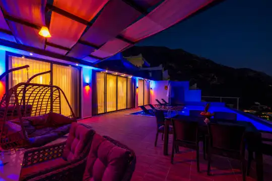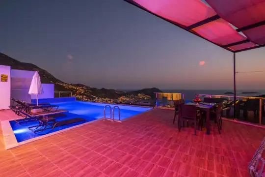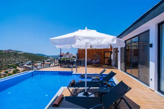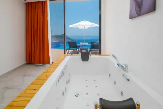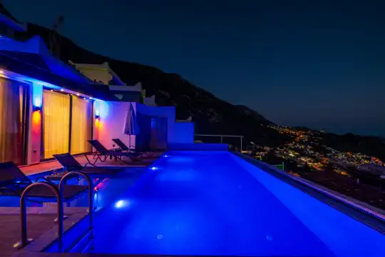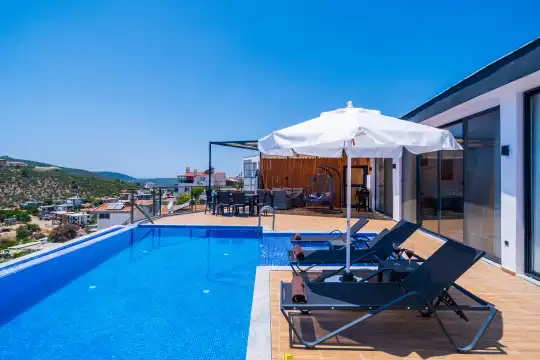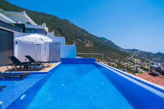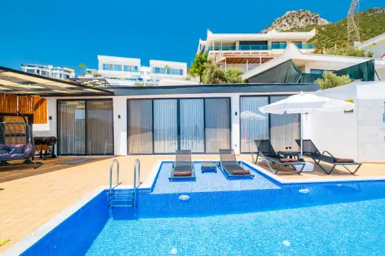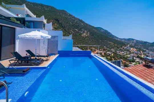 Villa Meri, Kalkan'ın Akbel mevkiinde konumlanmış, balayı çiftleri ve çekirdek hücreleri için ideal bir tatil villasıdır. 5 kişilik konaklamaya sahip olan villamız, korunaklı sonsuzluk havuzu ve jakuzisiyle lüks bir konfor sunmaktadır. Muhteşem deniz manzarası ve doğa ile iç mekan konumuyla misafirlerine hem fiziksel hem de zihinsel olarak dinlenme imkanı sağlıyor. Bahçede bulunan modern oturma alanları ve sallanma, tatilinizi daha keyifli hale getiren detaylardan sadece birkaçıdır.