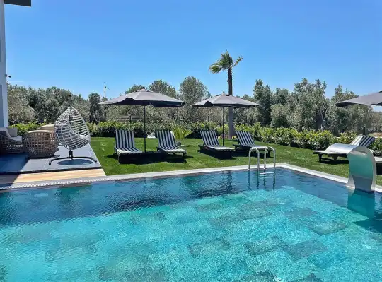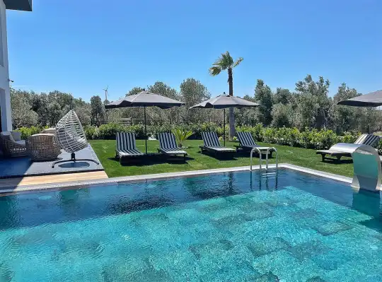 Villa Nova 1 ve Villa Nova 2, İzmir Çeşme Germiyan Mevkii'nde yan yana konumlanmaktadır. Her iki villa da doğa manzarası, lüks iç tasarımı ve geniş bahçe alanıyla misafirlerine harika bir tatil imkanı sunmaktadır. 5 yatak odası ve 6 banyoya sahip olan bu villaların tek farkı koltuk renkleridir, diğer tüm özellikleri aynıdır. Villalarımızda aynı fotoğraflar kullanılmış olup, her iki villa da doğa içinde huzurlu ve keyifli bir tatil arayan misafirler için idealdir.