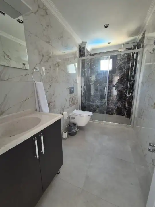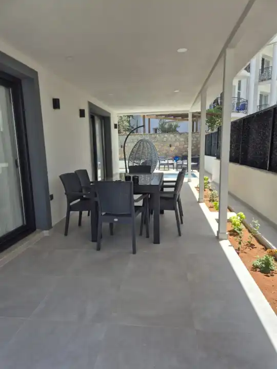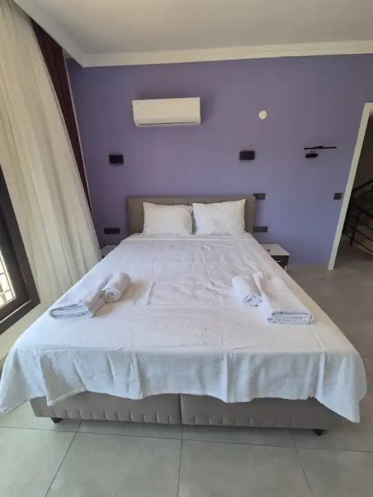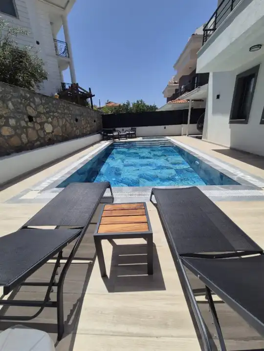 Fethiye Ölüdeniz bölgesinde yer alan villa, 4 yatak odasıyla 8 kişiye kadar konaklama imkanı sunmaktadır. Kalabalık aileler ve arkadaş grupları için ideal bir tercihtir. Merkezi konumuyla dikkat çeken villa, geniş bahçe alanında şezlong takımları, oturma grupları ve barbekü alanıyla donatılmıştır. Havuz terasına açılan konforlu oturma odası, tam donanımlı mutfağı ve şık iç tasarımıyla öne çıkar. Villada 3 adet çift kişilik yatak bulunan yatak odası ve 1 adet iki tek kişilik yatak bulunan yatak odası mevcuttur. Her odada özel banyo bulunmaktadır. Çift kişilik yatak bulunan odalardan birinde jakuzi de bulunmaktadır. Ailenizle birlikte huzurlu bir atmosferde güneşin ve havuzun keyfini çıkarabileceğiniz gibi, merkeze ve eşsiz plajlara da kolayca ulaşabilirsiniz. Keyifli bir tatil için bu villa, siz değerli misafirlerini bekliyor.