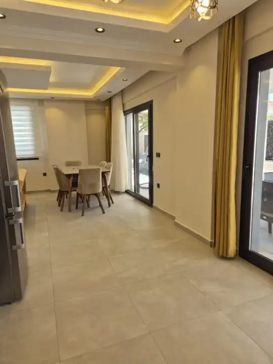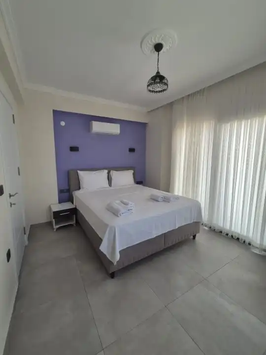 Fethiye Ölüdeniz bölgesinde yer alan villa, 4 yatak odasıyla 8 kişiye kadar konaklama imkanı sunmaktadır. Kalabalık aileler ve arkadaş grupları için ideal bir tercihtir. Merkezi konumuyla dikkat çeken villa, geniş bahçe alanında şezlong takımları, oturma grupları ve barbekü alanıyla donatılmıştır. Havuz terasına açılan konforlu oturma odası, tam donanımlı mutfağı ve şık iç tasarımıyla öne çıkar. Villada 3 adet çift kişilik yatak bulunan yatak odası ve 1 adet iki tek kişilik yatak bulunan yatak odası mevcuttur. Her odada özel banyo bulunmaktadır. Çift kişilik yatak bulunan odalardan birinde jakuzi de bulunmaktadır. Ailenizle birlikte huzurlu bir atmosferde güneşin ve havuzun keyfini çıkarabileceğiniz gibi, merkeze ve eşsiz plajlara da kolayca ulaşabilirsiniz. Keyifli bir tatil için bu villa, siz değerli misafirlerini bekliyor.