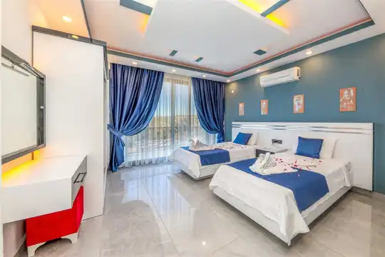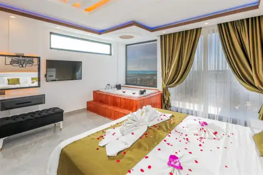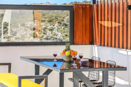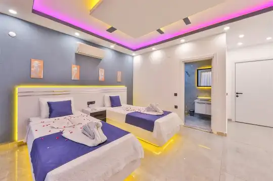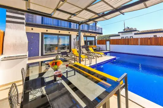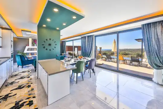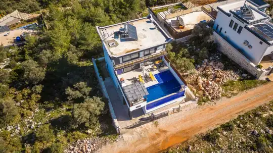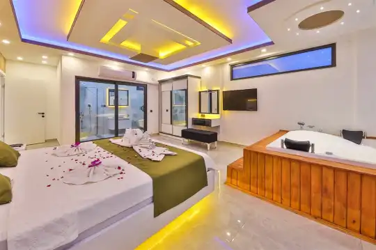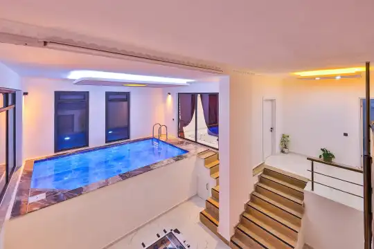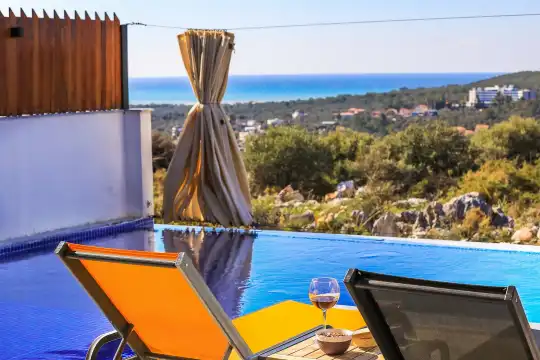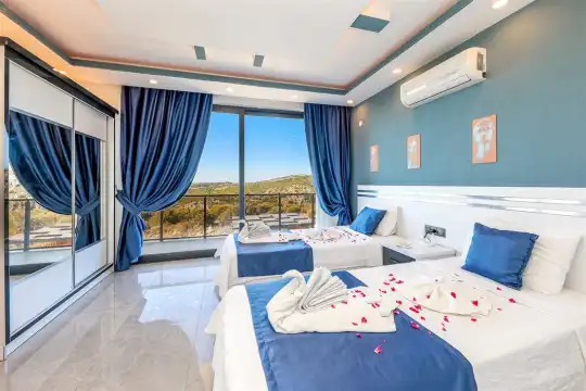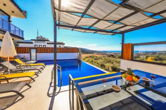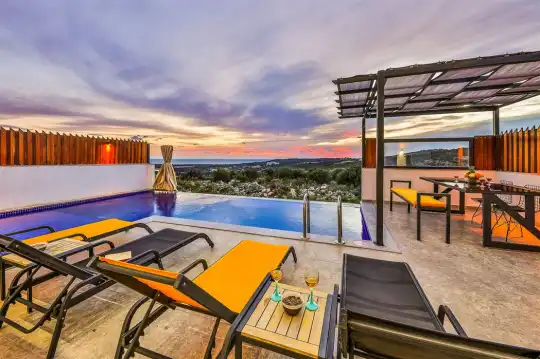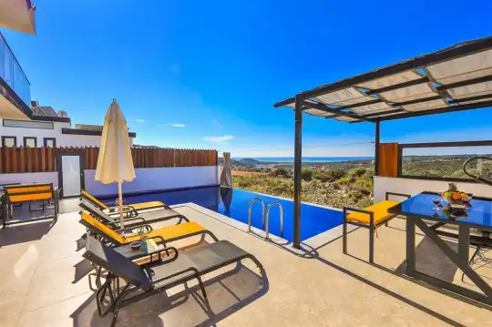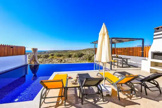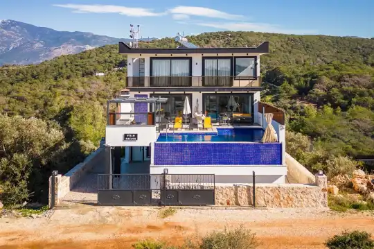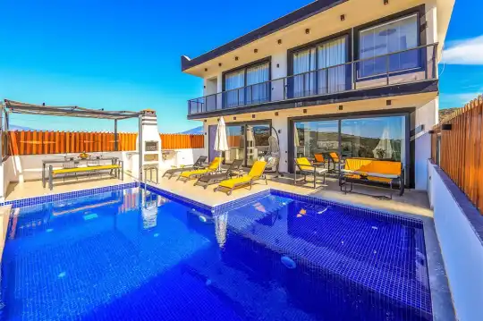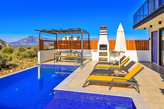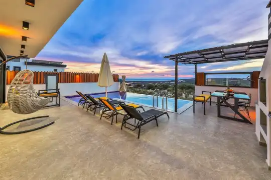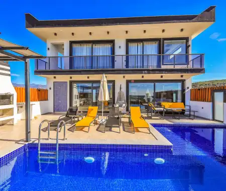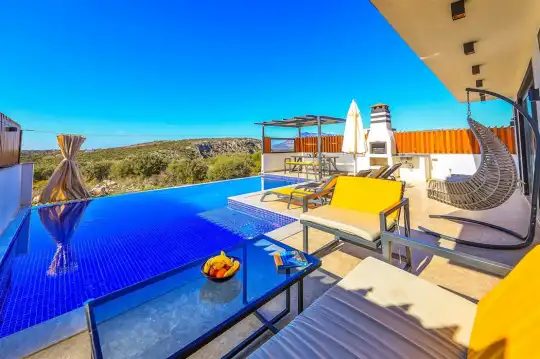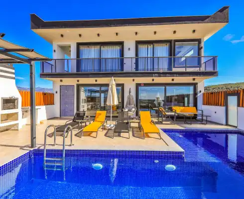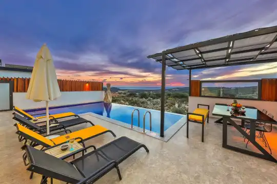 Kalkan'ın göz alıcı Patara mevkiinde, eşsiz bir doğa manzarası eşliğinde konumlanan Villa Ahilya, lüks iç dizaynı ve özenle düşünülmüş detaylarıyla sizleri karşılıyor. İç mekanında yer alan sıcak kapalı havuz, langırt, sauna, hamam ve yatak odasındaki jakuzi ile rahatlatıcı bir atmosfer sunan villa, bahçesindeki salıncak, barbekü alanı ve oturma alanı ile konuklarına keyifli anlar yaşatıyor. Panoramik deniz manzarası, havuzu ve şezlonglarıyla Villa Ahilya, 6 kişilik konaklama kapasitesiyle muazzam bir tatil deneyimi vaat ediyor.