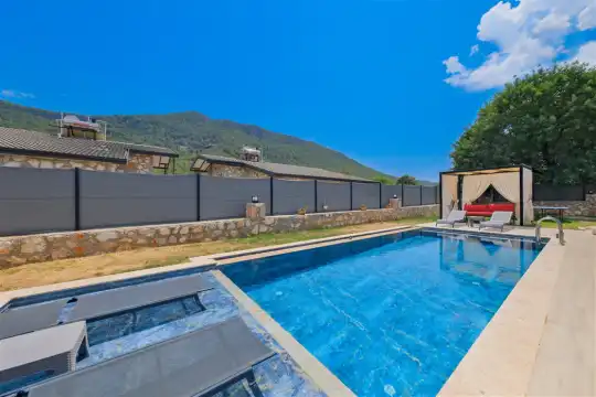 Villa Alya Trio, Fethiye’nin gözde tatil bölgelerinden Kayaköy’de yer alan, 3 yatak odası ve 6 kişilik konaklama kapasitesine sahip bir villadır. Korunaklı özel havuzuyla, mahremiyete önem veren geniş aileler için ideal bir tatil seçeneği sunmaktadır. Villa Alya Trio, huzurlu ve keyifli bir tatil için misafirlerini bekliyor.