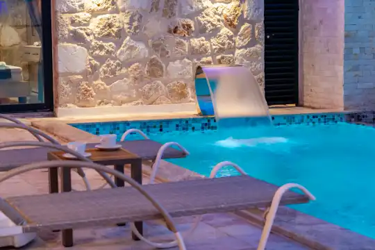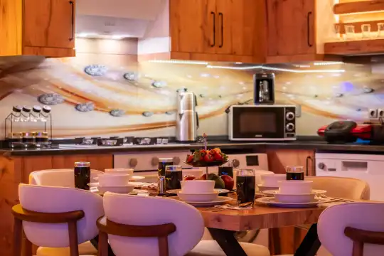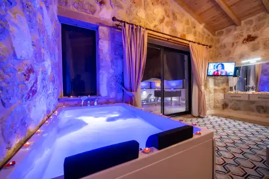 Ebeveyn yatak odasında bulunan çift kişilik jakuzi, tatilinize ekstra konfor ve keyif katar. Doğayla iç içe, sakin ve huzurlu bir tatil deneyimi yaşamak isteyenler için ideal bir seçenek olan bu villa, unutulmaz anılar biriktirmeniz için sizi bekliyor.