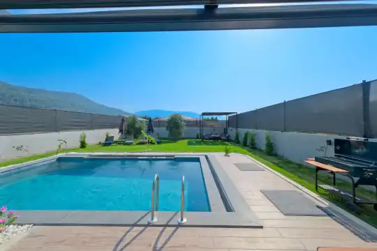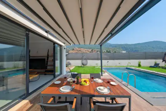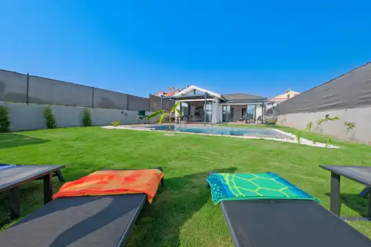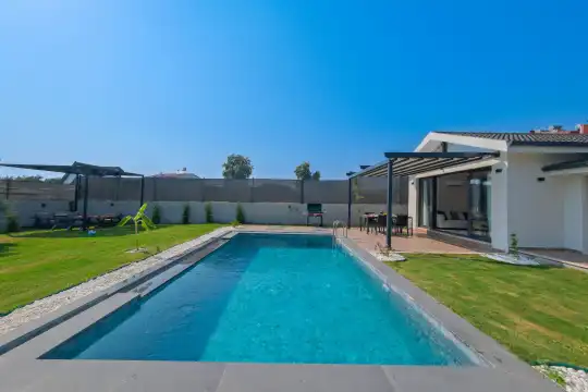 Ailenizle birlikte huzurlu bir atmosferde güneşin ve havuzun tadını çıkarabileceğiniz gibi, merkeze ve eşsiz plajlara da kolayca ulaşabilirsiniz. Keyifli bir tatil için bu villa, siz değerli misafirlerini ağırlamayı beklemektedir.