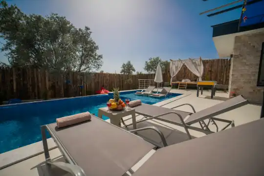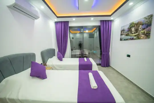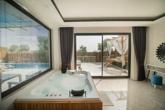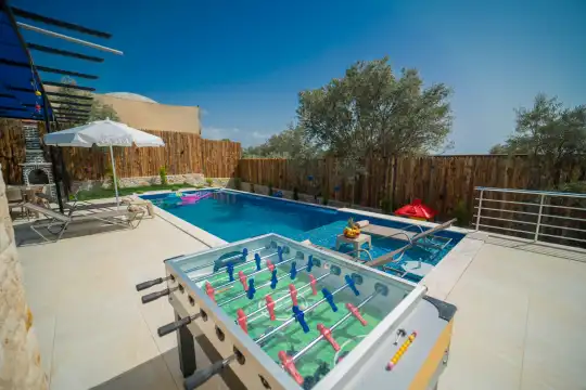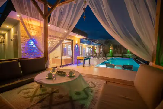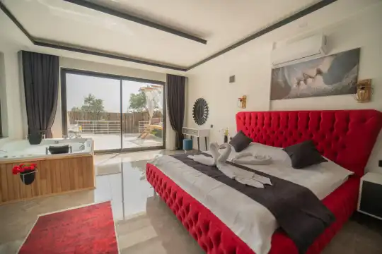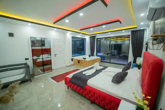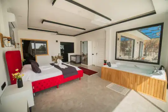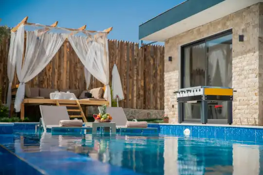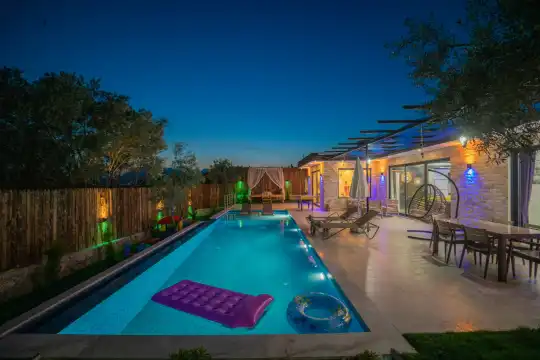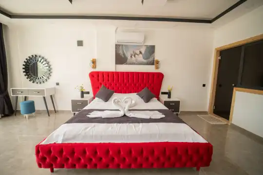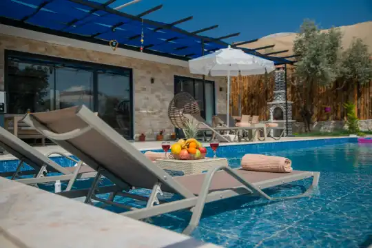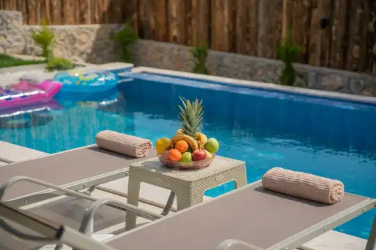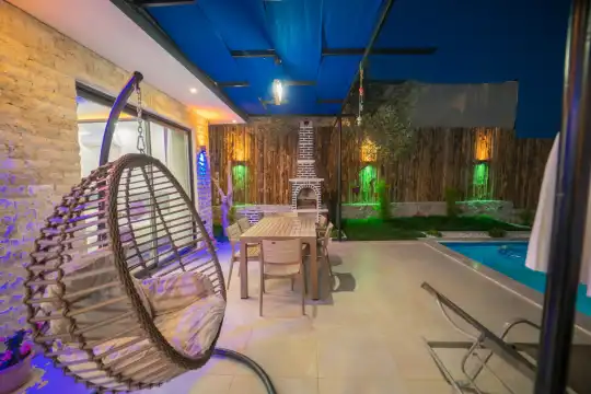Kalkan Kınık Mahallesi’nde huzurlu ve konforlu bir tatil arayanlar için ideal bir seçenek: Bu özel villa, geniş bahçesi, çocuk oyun alanı ve langırt gibi olanaklarıyla özellikle çocuklu aileler için mükemmel bir tercih sunuyor.2 yatak odası ile 4 kişilik konaklama kapasitesine sahip olan villamız, ebeveyn odasında yer alan çift kişilik jakuziyle misafirlerine ekstra rahatlama ve keyif imkanı sağlıyor. Huzur dolu bir atmosferde, keyifli bir tatil geçirmek isteyenleri bekliyor.