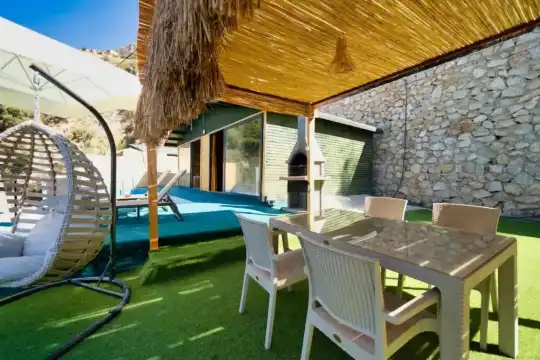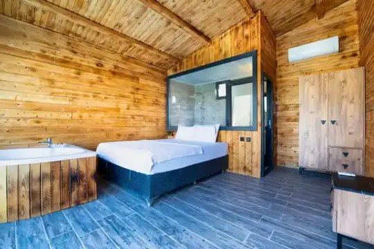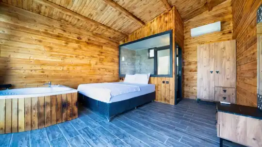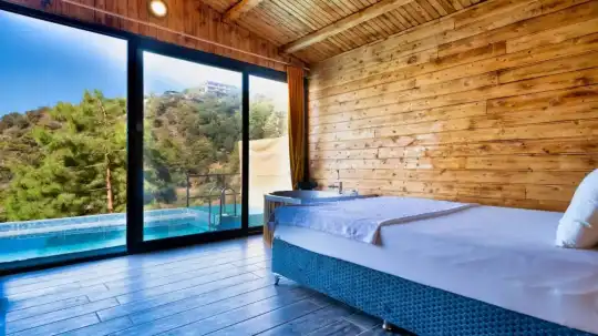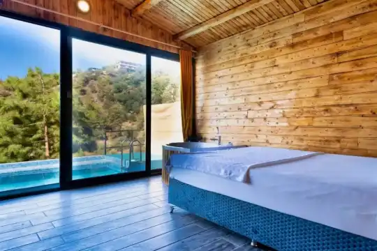 Faralya’nın huzur dolu doğasında, deniz manzaralı ve jakuzili bu villa, iki kişilik konaklama kapasitesiyle balayı çiftlerine eşsiz bir tatil sunuyor. Korunaklı havuz alanı, geniş bahçesi, şezlong ve barbekü alanıyla rahatlık ve mahremiyeti bir arada sunan villada, modern oturma odası ve tam donanımlı mutfak da yer alıyor. Kelebekler Vadisi ve Kabak Koyu gibi doğa harikalarına yakın olan villa, hem dinlenmek hem de keşif için ideal bir seçenek.