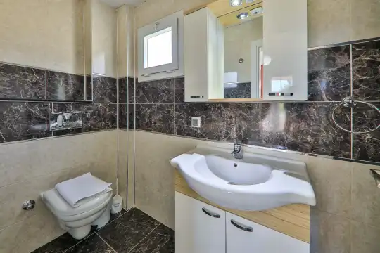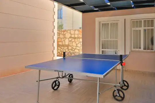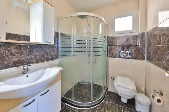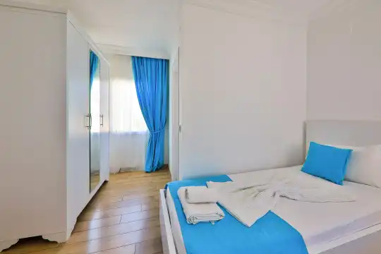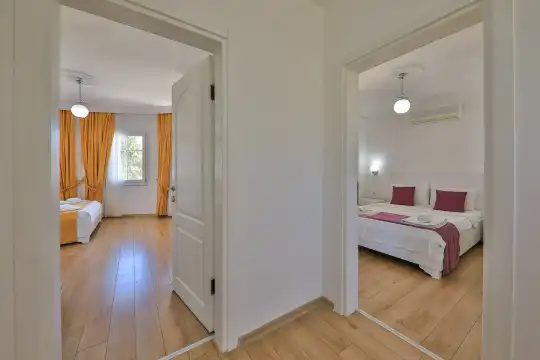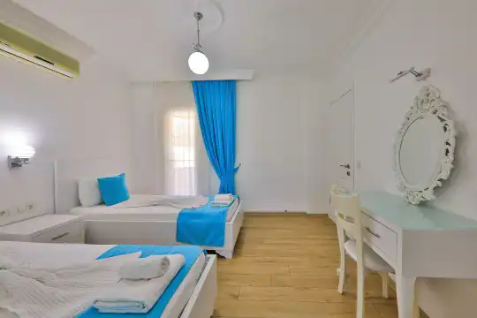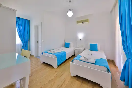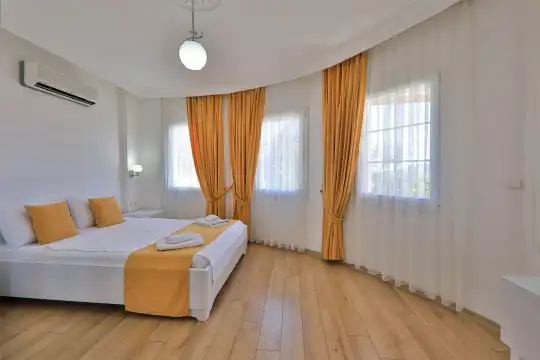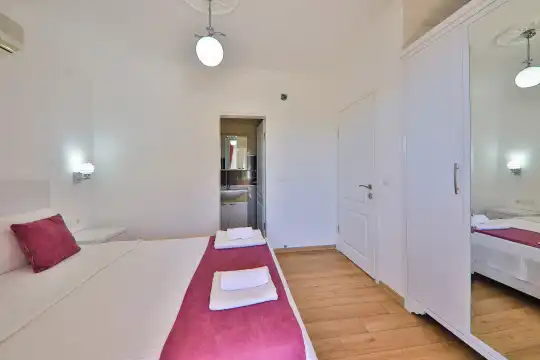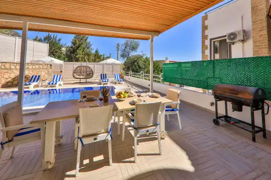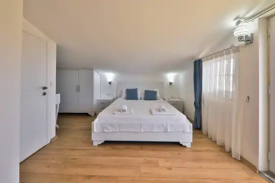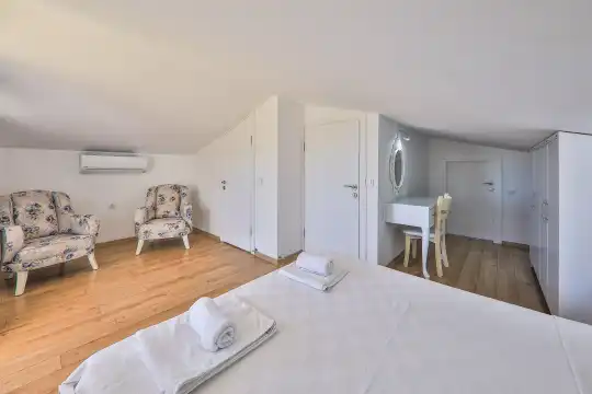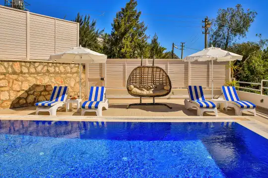 Villamızın bahçesinde yer alan havuzda deniz manzarasının keyfini çıkarabilir, yazın serin sularında serinleyebilirsiniz. Ayrıca villamızın yatak odalarında klima, elbise dolabı, makyaj masası gibi birçok kullanışlı eşya bulunmaktadır. Temiz nevresim takımları ve havlu takımları da misafirlerimizin rahatı için sağlanmıştır.