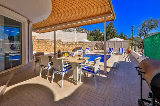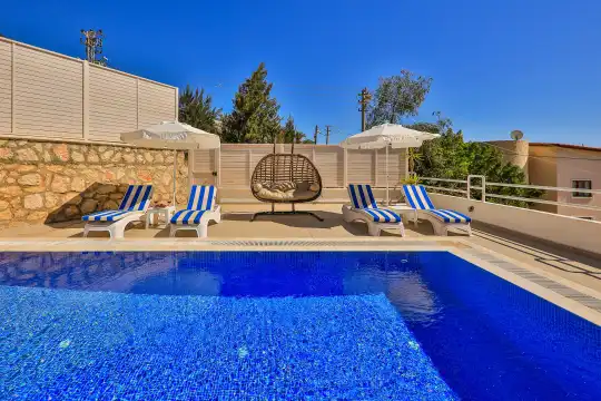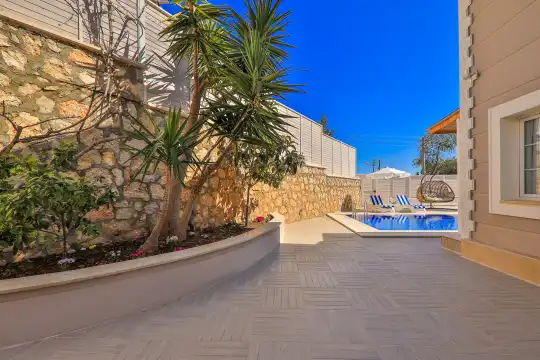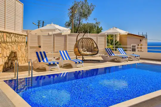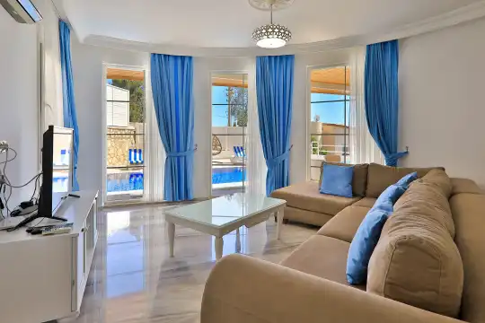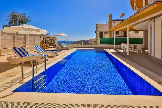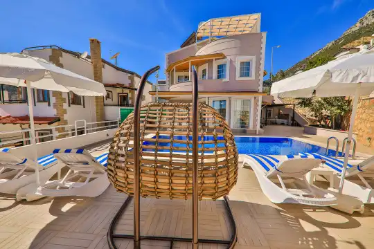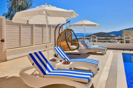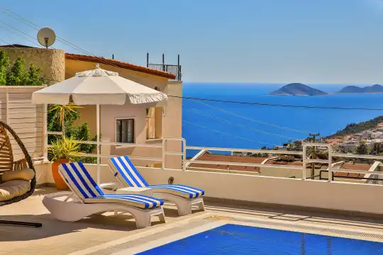Kalkan bölgesinde konumlanan deniz ve şehir manzaralı kiralık villamız, 10 kişilik konaklama kapasitesine sahip olup 5 yatak odası bulunmaktadır. Geniş ve ferah bir yapıya sahip olan villamızda, misafirlerimizin konforu için her detay düşünülmüştür.