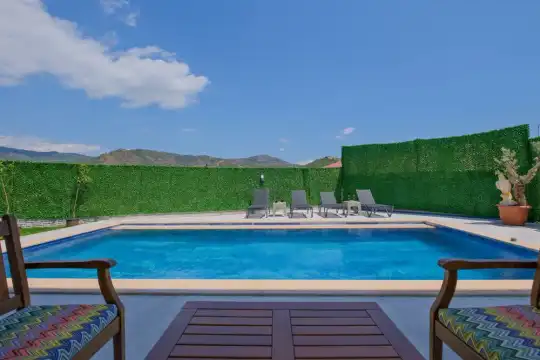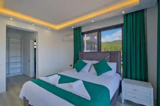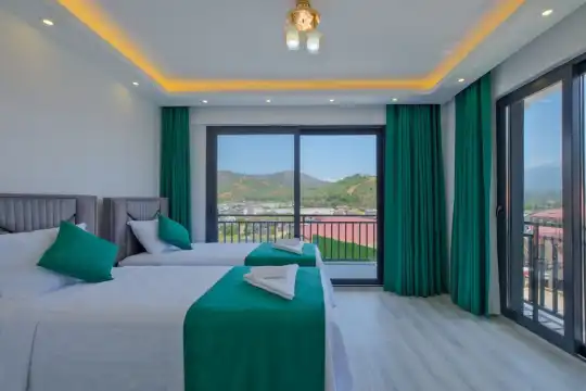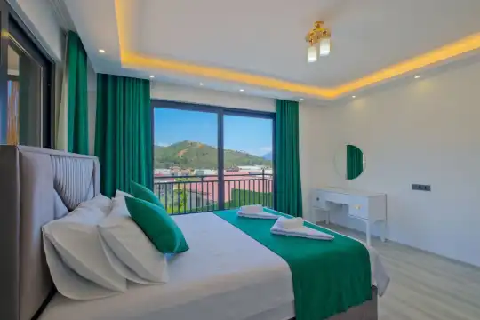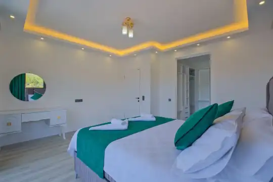 Fethiye’nin Karagedik mevkiinde yer alan bu villa, 3 yatak odasıyla 6 kişiye kadar konaklama imkânı sunuyor. Çekirdek aileler ve kalabalık arkadaş grupları için ideal bir seçenek olan villa, havuz alanının korunaklı yapısıyla da mahremiyet arayan misafirlere hitap ediyor.
