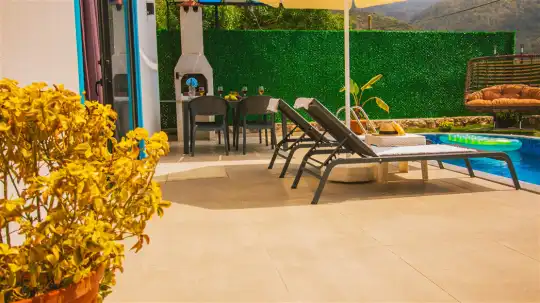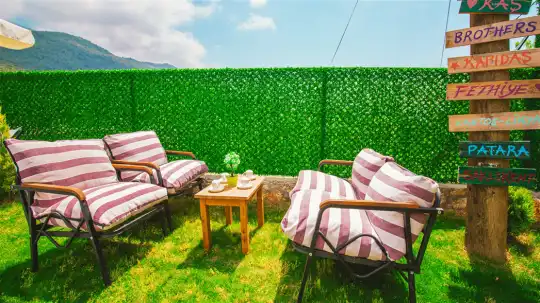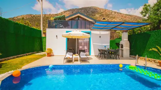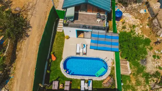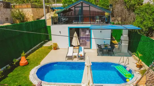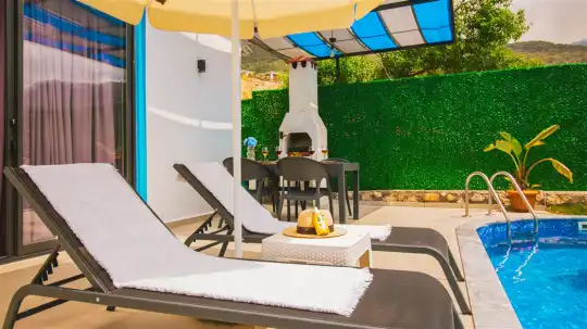Villa The Brother, Kalkan’da doğayla iç içe, huzurlu ve konforlu bir tatil deneyimi sunuyor. Geniş özel havuzu, korunaklı bahçesi ve şık terasıyla, misafirlerine tam anlamıyla dinlenme ve keyif dolu anlar vadediyor. Havuz kenarındaki şezlonglar ve açık hava oturma alanı, günün her saatinde keyifli vakit geçirmek isteyenler için ideal.