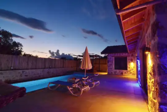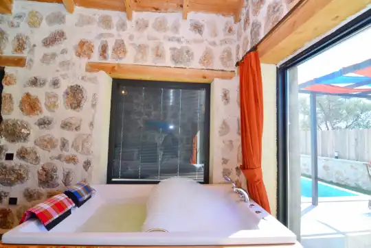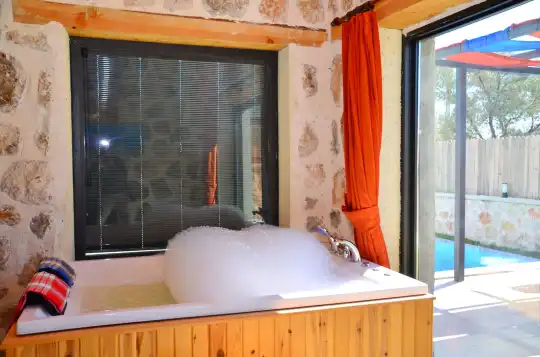 Doğa içinde yer alan, jakuzili ve muhafazakar yapıda olan bu şirin balayı villası, misafirler için her detayın düşünüldüğü bir tatil deneyimi sunar. 1 yatak odasıyla çiftlerin rahatça konaklayabileceği bu villa, özel ve romantik anlar yaşamak isteyenler için ideal bir seçenektir. Muhafazakar yapıya sahip olması, konuklara gizlilik ve huzur sağlar, böylece keyifli bir tatil geçirebilirler. Villada bulunan jakuzi ise konuklara ekstra bir lüks ve konfor sunar, romantik anların tadını çıkarmalarını sağlar. Bu villada tatil geçiren misafirler, doğanın kucağında huzurlu ve unutulmaz bir balayı deneyimi yaşayacaklardır.