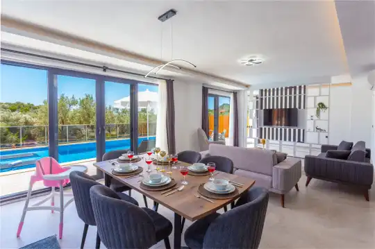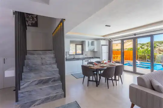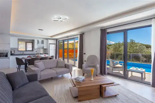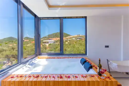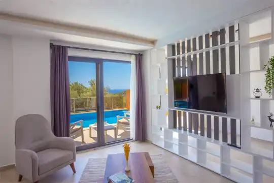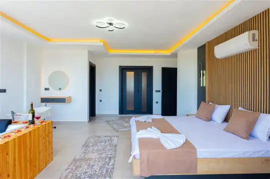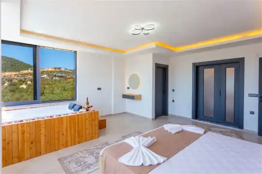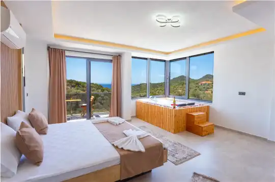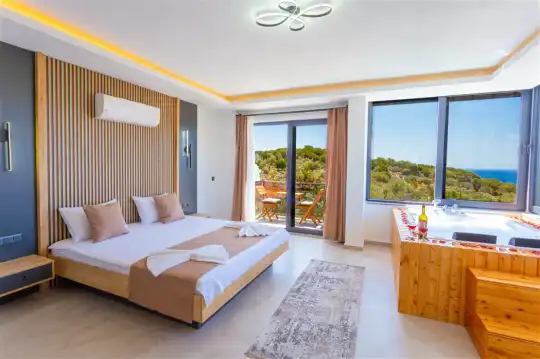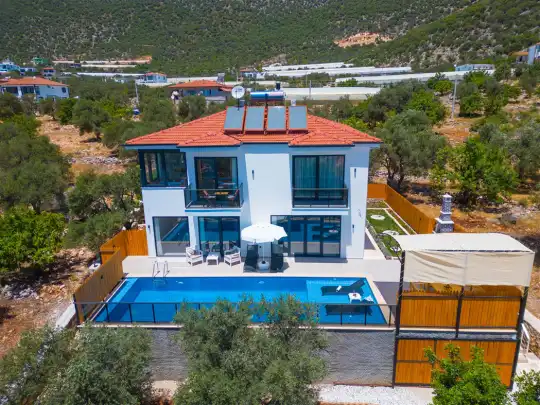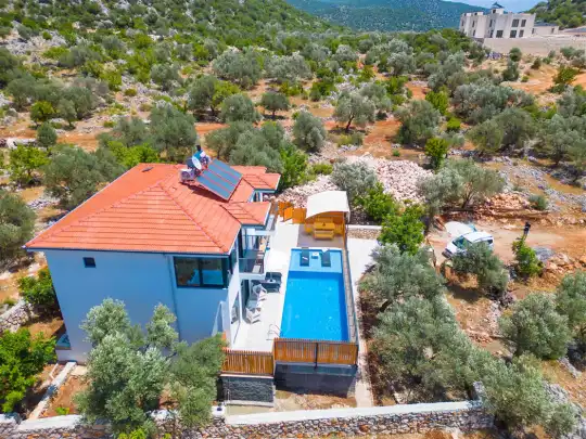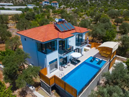 Kaş Belenli Mahallesi Sısla Mevkii'nde konumlanan Villa Capella, yeşilliklerle çevrili muhteşem doğa manzarasıyla dikkat çeken kiralık villalarımızdan biridir. Modern ve konforlu bir şekilde dekore edilen villamız, 2 yatak odasıyla 4 kişiye konaklama imkanı sunar. Yatak odalarından birinde, yıl boyunca biriken yorgunluğu atabileceğiniz jakuzi bulunmaktadır. Özellikle balayı çiftleri ve çekirdek aileler için ideal olan bu villamızda, dış havuza entegre sığ havuz da mevcuttur. Havuz ve havuz terası kısmen korunaklı olarak tasarlanmıştır; diğer villalara kıyasla daha yüksek bir mahremiyet sunar, ancak tam korunaklılık arayan misafirler için uygun olmayabilir. Villa Capella, sessizlik ve huzur içinde bir tatil arayanlar için mükemmel bir tercihtir.