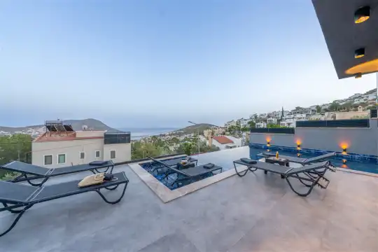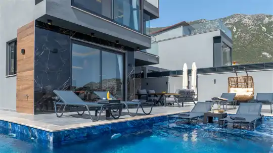 Kalkan'ın büyüleyici atmosferinde, muhteşem Akdeniz manzarasına hakim konumuyla Villa Cihan, lüks ve konforu bir arada sunan bir tatil cennetidir. Hem iç hem dış havuzu bulunan bu etkileyici villa, sevdiklerinizle birlikte unutulmaz anılar biriktirmeniz için sizleri bekliyor.