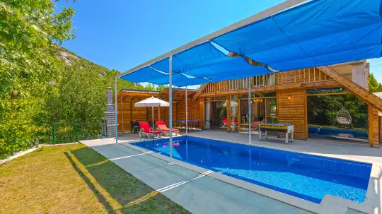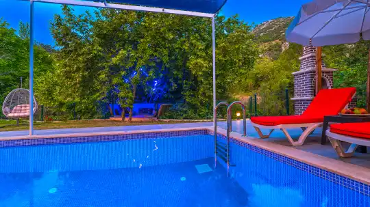 Villa Çukur Duo Kalkan İslamlar  mevkiinde yer almaktadır . 2 yatak odalı 4 kişi konaklama kapasitesine sahiptir. Doğa içinde yer alan bu jakuzili bungalov, geniş bahçeler ve keyifli aktivitelerle öne çıkıyor. Masa tenisi, langırt ve rahat bir köşke sahip olan bu bungalov, huzurlu bir giyimli rahat bir tatil arayanlar için mükemmel bir seçenek