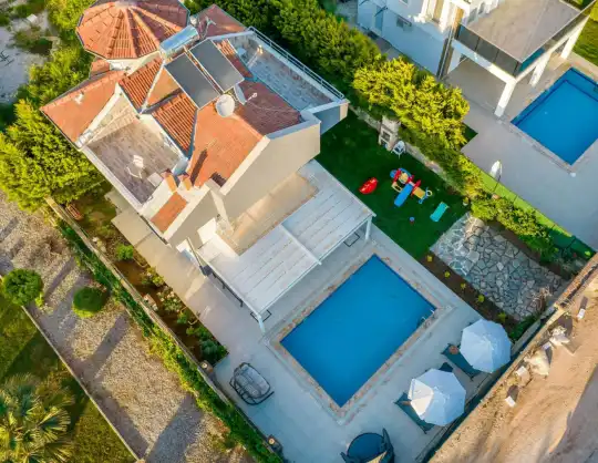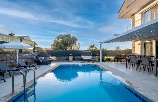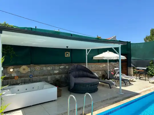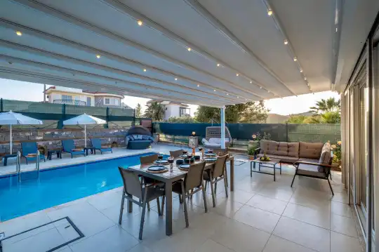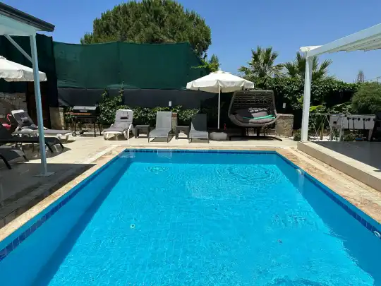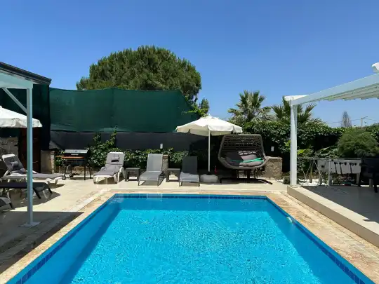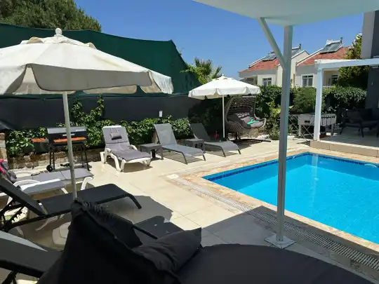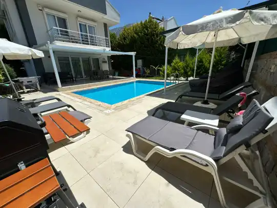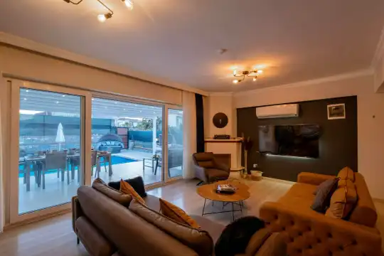 Villamız 3 yatak odalı ve 7 kişi kapasiteli olup, her odada TV, klima ve ebeveyn banyosu bulunmaktadır.