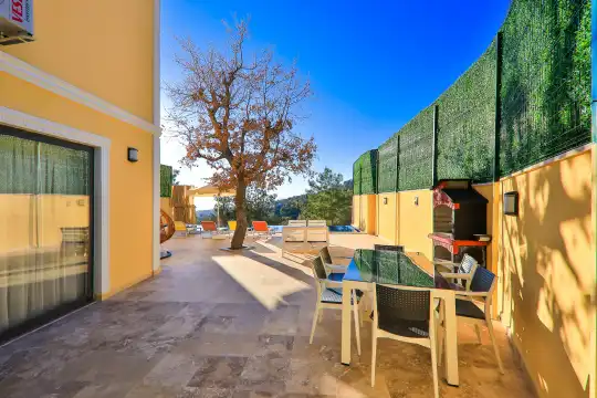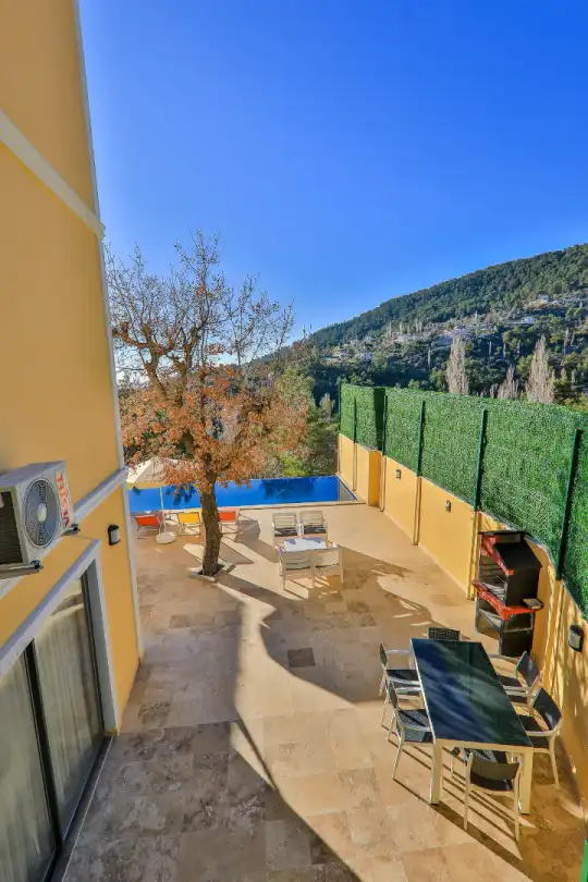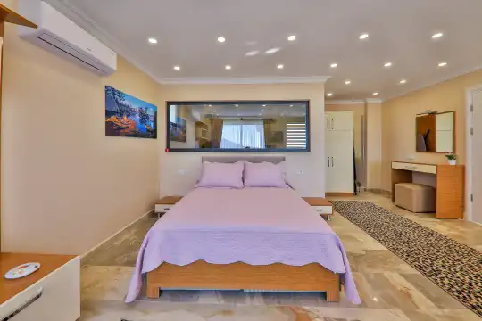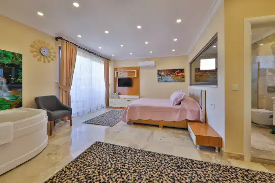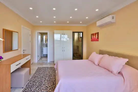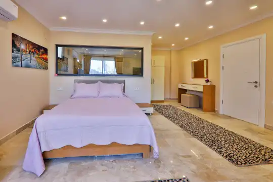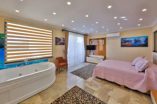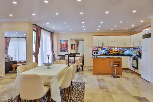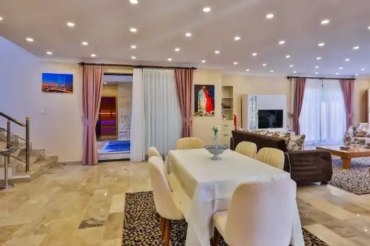 Havuzu tamamen korunaklı ve bahçesi dışarıdan görünmeyen bu villa, mahremiyete önem veren aileler ve arkadaş grupları için huzurlu bir kaçış noktasıdır. Kapalı havuzunda yer alan ısıtma sistemi 1 Ekim - 31 Mayıs tarihleri arasında ücretsiz olup, 27-30 derece arasında keyifli bir yüzme deneyimi sunar.