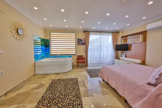 Kalkan İslamlar Köyü'nde yer alan Villa Doğa Meşe , lüks ve konforu bir araya getiren eşsiz bir tatil deneyimi sunuyor. 5 yatak odası ile 11 kişiye kadar konaklama kapasitesine sahip olan bu villa, her detayıyla unutulmaz bir tatil için tasarlanmıştır. Hamam, sauna, buhar odası, spor aletleri ve oyun alanı gibi olanaklarıyla her ihtiyacınıza cevap veren villa, ayrıca her odasında bulunan jakuzi ile ekstra rahatlık sağlar.