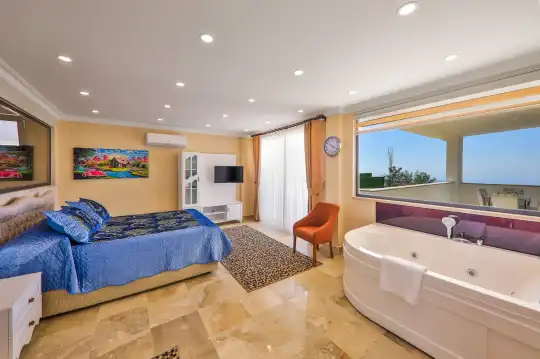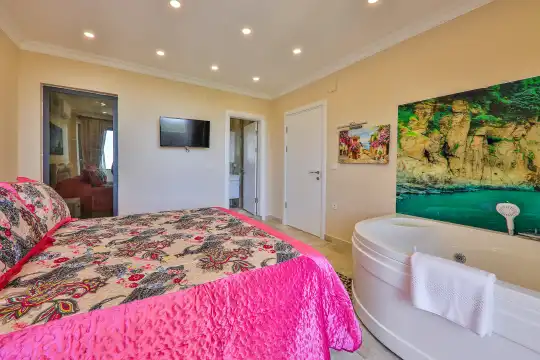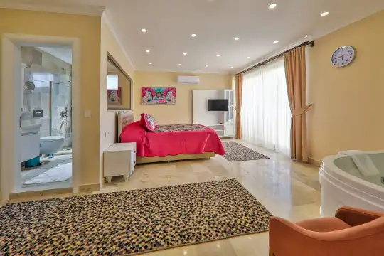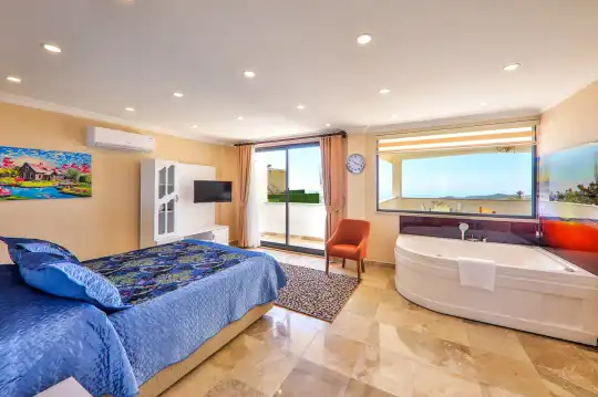Kalkan İslamlar Köyü'nde yer alan Villa Doğa Palmiye , lüks ve konforu bir araya getiren eşsiz bir tatil deneyimi sunuyor. 5 yatak odası ile 11 kişiye kadar konaklama kapasitesine sahip olan bu villa, her detayıyla unutulmaz bir tatil için tasarlanmıştır. Hamam, sauna, buhar odası, spor aletleri ve oyun alanı gibi olanaklarıyla her ihtiyacınıza cevap veren villa, ayrıca her odasında bulunan jakuzi ile ekstra rahatlık sağlar.