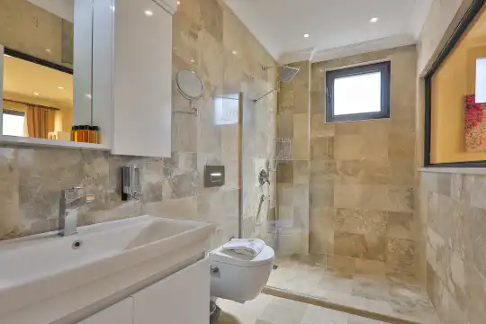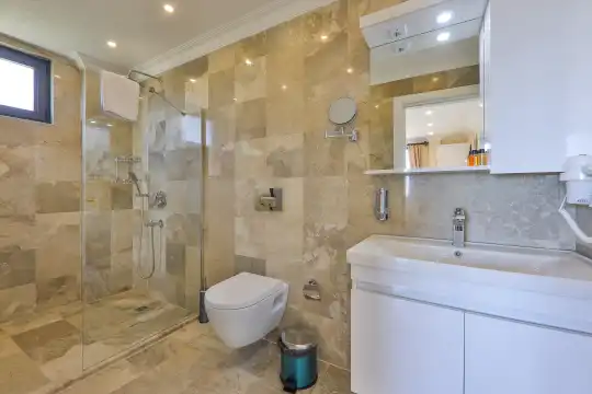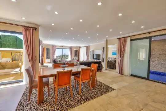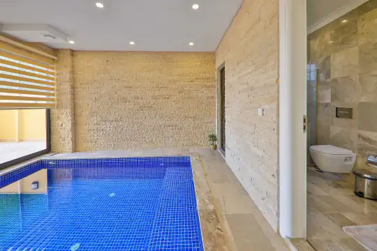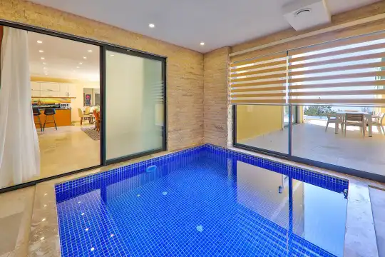 Havuzu tamamen korunaklı ve bahçesi dışarıdan görünmeyen bu villa, mahremiyete önem veren aileler ve arkadaş grupları için huzurlu bir kaçış noktasıdır. Kapalı havuzunda yer alan ısıtma sistemi 1 Ekim - 31 Mayıs tarihleri arasında ücretsiz olup, 27-30 derece arasında keyifli bir yüzme deneyimi sunar.