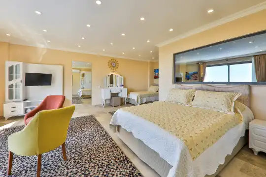 Not: Villanın sauna ve hamam kullanımı için günlük 5000 TL ücret talep edilmektedir. Ayrıca villa, jenaratör sistemiyle kesintisiz bir konaklama imkanı sağlar. Denize yaklaşık 10 km mesafede bulunan Villa Doğa Palmiye, sakin ve lüks bir tatil arayanlar için ideal bir tercihtir.