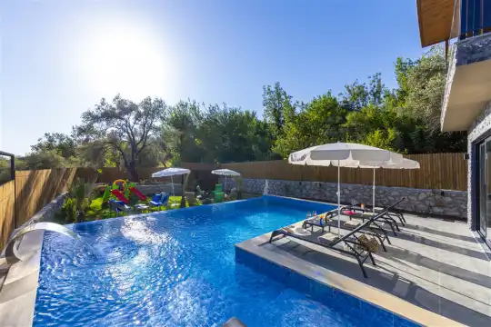 Villamız, Kaş/Kalkan tatil beldesinin huzurlu bölgelerinden biri olan İslamlar mevkiinde yer almaktadır. Son yıllarda villa tatilinin favori adreslerinden biri haline gelen bu bölge, ormanlarla çevrili sakin atmosferi ve araçla merkeze sadece 5 dakikalık mesafesiyle, misafirlerine eşsiz manzara eşliğinde lüks bir tatil imkânı sunmaktadır.