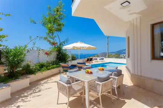 Kalkan Kızıltaş bölgesinde yer alan muhteşem deniz ve şehir manzaralı, 3 yatak odalı özel havuzlu tatil villamız sizi bekliyor. Modern ve zevkli dekorasyonuyla evinizdeki rahatlığı sunan villamızda geniş ve aydınlık salon, konforlu yatak odaları ve özel teras bulunmaktadır. Villamızın müstakil bahçesi ve özel yüzme havuzuyla tatilin tadını çıkarırken şehrin kalabalığından uzak huzurlu bir atmosferde dinlenebilirsiniz. Kalkan'ın en özel bölgelerinden birinde yer alan villamız, unutulmaz bir tatil deneyimi sunuyor.