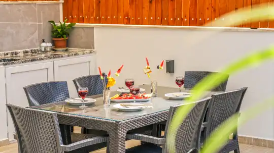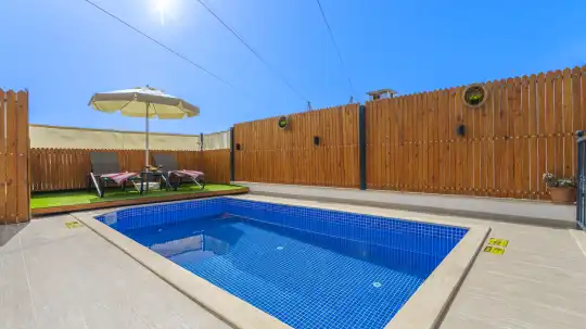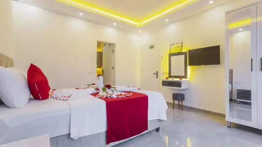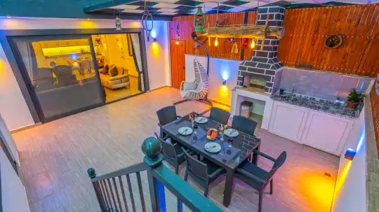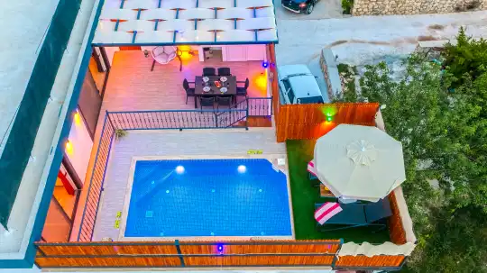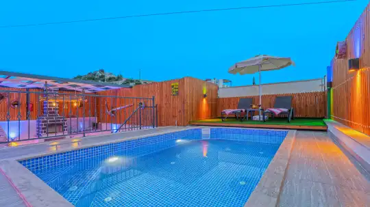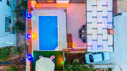 Kalkan Kördere’nin huzur dolu doğasında, lüks ve konforun birleştiği bir tatil: Villa Ela Ece!  Modern tasarımı, geniş ve ferah iç mekanlarıyla hem muhafazakar ailelere hem de balayı çiftlerine özel bir konaklama sunuyor. 2 yatak odalı ve 4 kişilik kapasiteye sahip villamız, konukların ihtiyaçları düşünülerek özenle tasarlanmıştır. Doğanın sakinliğiyle çevrili bu harika villa, şehir merkezine sadece araçla 5 dakika mesafededir. Unutulmaz bir tatil deneyimi için Villa Ela Ece, siz değerli misafirlerini bekliyor!
