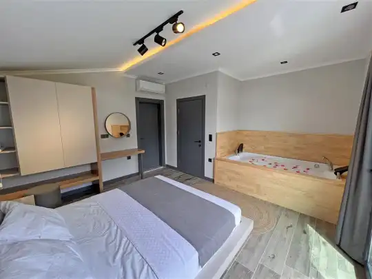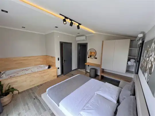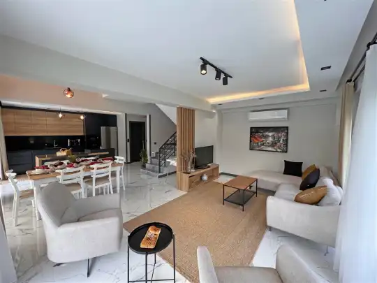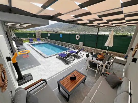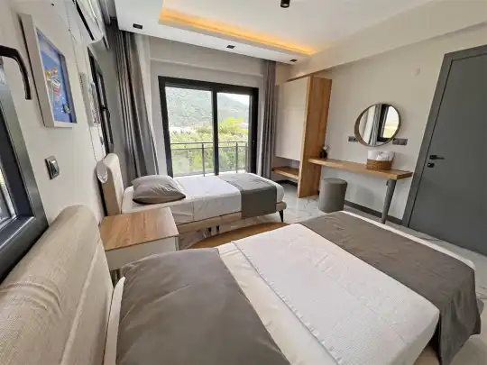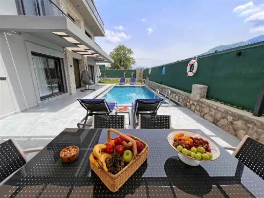 Villa Enbaem, Fethiye'nin Esenköy mevkiinde bulunan, 2023 yılında inşa edilmiş modern ve şık bir villadır. Toplamda 8 kişiye kadar konaklama imkanı sunan 4 yatak odası bulunmaktadır. Ayrıca, salonun koltuk kullanımıyla konaklama kapasitesi 9 kişiye çıkarılabilir. Villadaki her odanın, konforunuz ve rahatınız için özenle tasarlandığına emin olabilirsiniz.