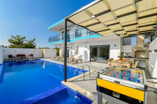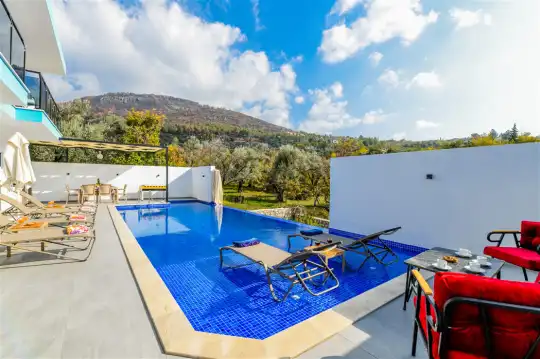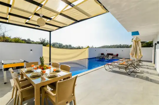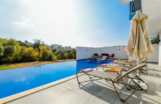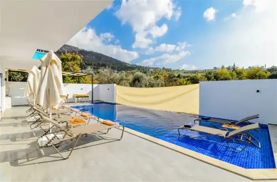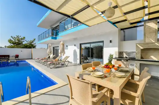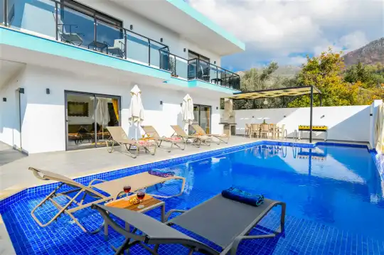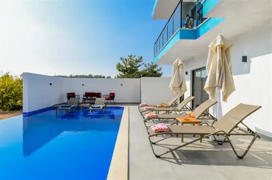 Villa Feel, Kaş Kalkan'ın Üzümlü bölgesinde yer alan, modern ve şık bir tatil villasıdır. 3 yatak odası ve 6 kişilik konaklama kapasitesi ile geniş aileler ve arkadaş grupları için ideal bir konaklama sunar. Villanın özel olarak tasarlanmış havuzu tamamen korunaklı olup, misafirlerimize huzur ve gizlilik içinde bir tatil imkanı sağlar.