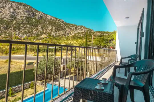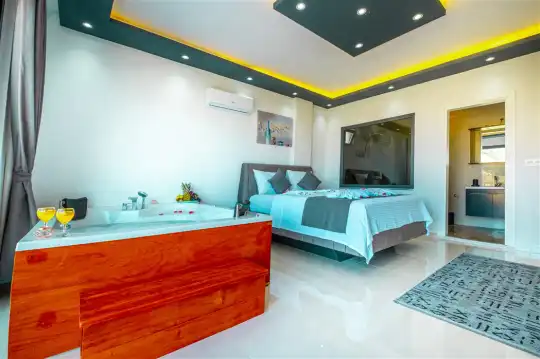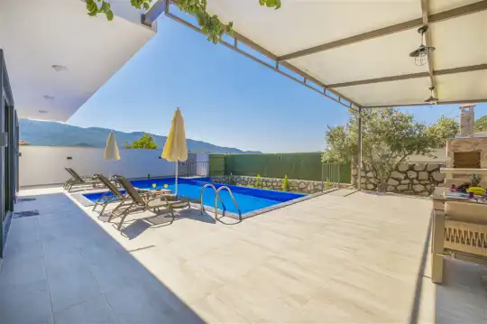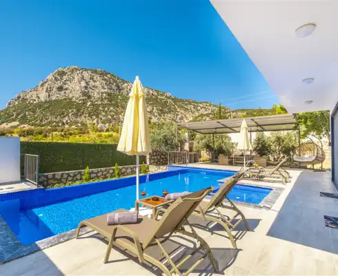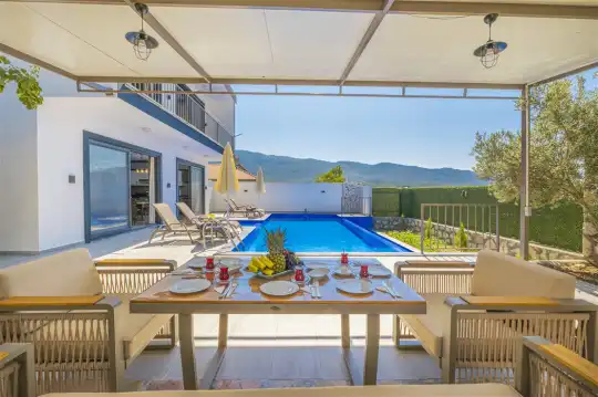 Villa Filiz, Kalkan’ın İkizce mevkiinde yer almakta olup, doğa manzaralı özel bir tatil deneyimi sunmaktadır. 6 kişilik konaklama kapasitesine sahip olan bu villa, geniş aileler ve arkadaş grupları için mükemmel bir seçenektir. Villamız, geniş ve ferah bir iç mekan sunarak konforlu bir tatil deneyimi sağlar. Özel havuzu, tamamen korunaklı bir yapıya sahip olup, mahremiyetinizi ön planda tutarak rahatça yüzme keyfi yaşamanıza imkan tanır. Bahçesi ve havuz alanı doğayla iç içe olup, sessiz ve huzurlu bir ortamda dinlenmenizi sağlar. Doğa içinde konumlanan Villa Filiz, geniş aileler ve arkadaş grupları için geniş yaşam alanları sunarak, hem konforlu hem de keyifli bir tatil geçirebilmeniz için idealdir. Villa, hem dinlenme hem de sosyal etkinlikler için uygun alanlar sunarak tatilinizi unutulmaz kılacak her detayı düşünmüştür.