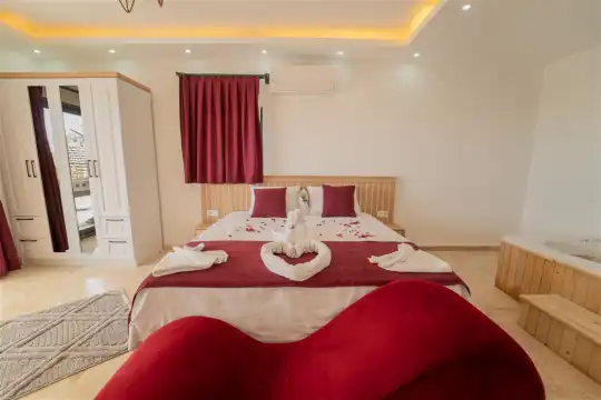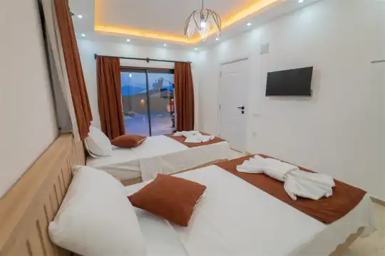 Villa Gelincik 3, Kalkan Çayköy'de doğanın kalbinde yer almaktadır. 2 yatak odalı olup, 4 kişi konaklama kapasitesine sahiptir. Konforlu bir bahçe alanı ve korunaklı özel havuzuyla, muhafazakar aileler için uygun bir tatil sunmaktadır. Özellikle balayı çiftleri için idealdir ve huzurlu bir tatil deneyimi yaşamak isteyen misafirlerine eşsiz bir konaklama fırsatı sunar.