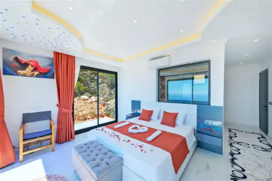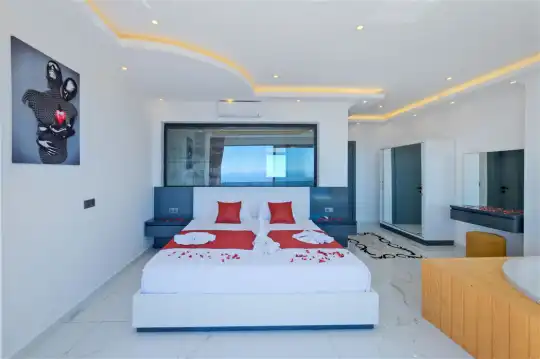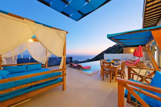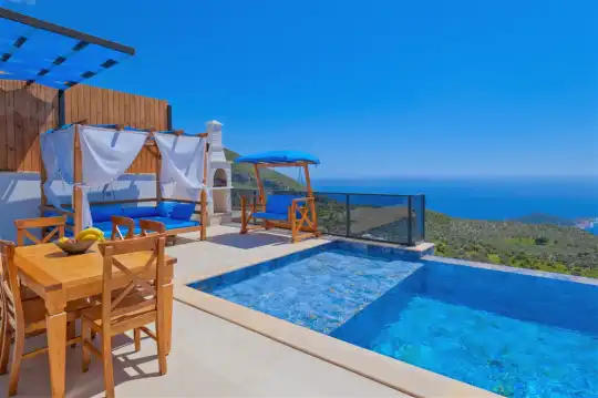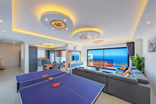 Villa Gökçe, muhteşem doğa manzarası ve eşsiz gün batımıyla sizi karşılayan bir tatil alternatifidir. 3 yatak odası ve 6 kişilik konaklama kapasitesiyle Villa Gökçe, çekirdek ailelerden büyük ailelere kadar geniş bir misafir profiline hitap etmektedir. Kapalı havuz, hamam, sauna, çocuk parkı ve masa tenisi gibi birbirinden özel özelliklere sahip olan villamız, konfor ve eğlenceyi bir araya getirerek unutulmaz bir tatil deneyimi sunar. Villa Gökçe, özenle seçilmiş konforlu mobilyalarla tasarlanmıştır, böylece konuklarımız rahat bir konaklama deneyimi yaşarlar. Gökyüzüne yakın bir konumda bulunan bu villa, sadece doğanın güzelliklerini sunmakla kalmayıp, aynı zamanda huzurlu bir atmosferde tatil yapmak isteyenlere ideal bir seçenek sunuyor.
