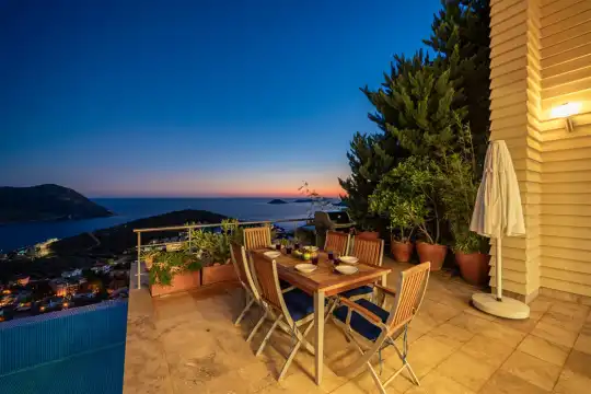 Kalkan’ın doğal güzellikleriyle iç içe yer alan Villa Heaven, unutulmaz bir tatil deneyimi için sizi bekliyor. Deniz manzaralı lüks bir villa arayanlar için mükemmel bir seçenek olan bu villa, Akdeniz'in huzurunu ve konforunu bir araya getiriyor. Özel yüzme havuzu ve geniş bahçesi sayesinde hem dinlenmek hem de sevdiklerinizle keyifli anlar geçirmek için ideal bir mekan sunuyor.