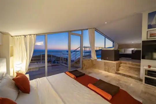 Villamız, 3 geniş yatak odası ile aileler ve arkadaş grupları için mükemmel bir konaklama imkanı sağlar. Her sabah Kalkan’ın nefes kesici deniz manzarasına uyanacak, gününüzü özel yüzme havuzunda Akdeniz güneşinin tadını çıkararak geçireceksiniz. Akşam saatlerinde ise geniş bahçenizde barbekü yaparak, yıldızların altında huzur dolu anların keyfini sürebilirsiniz.