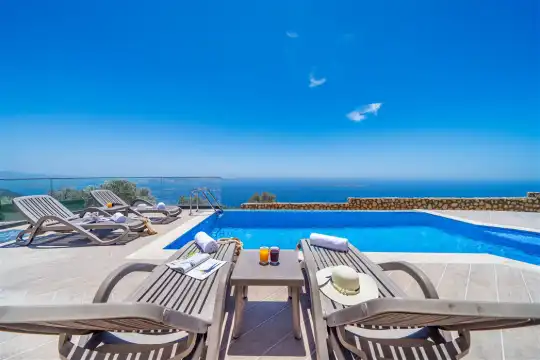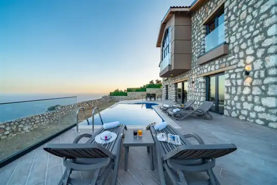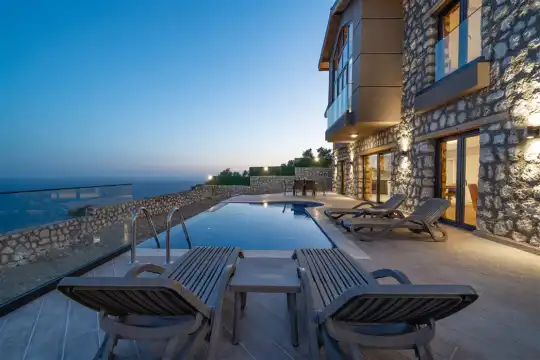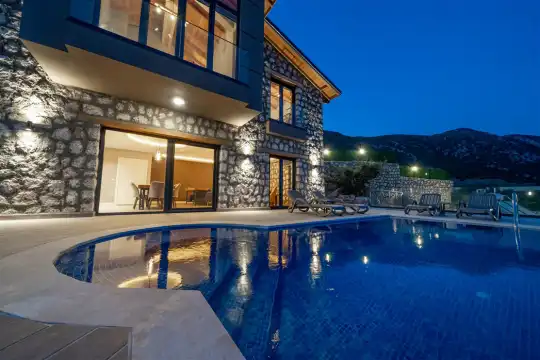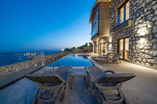 Antalya'nın Kaş bölgesindeki Baldıraz mevkiinde yer alan Villa Heybeli Ada, 3 yatak odasıyla toplamda 6 kişiye kadar konforlu konaklama imkânı sunuyor. Özenle dekore edilmiş odalarımız, siz değerli misafirlerimize unutulmaz bir tatil deneyimi yaşatmak için tasarlandı. Deniz manzaralı bu özel villada aileniz ya da arkadaşlarınızla huzur dolu, keyifli bir tatilin tadını çıkarın!