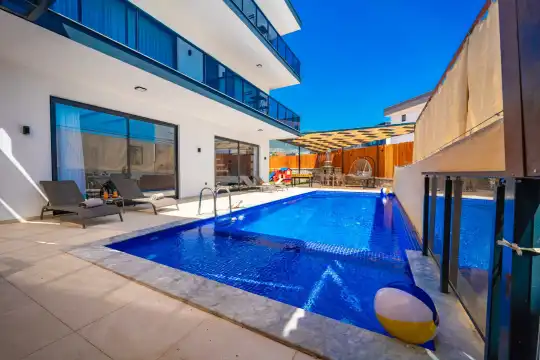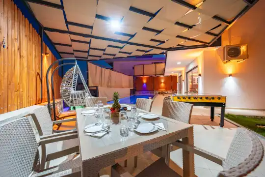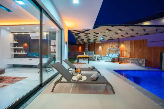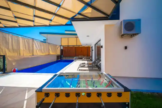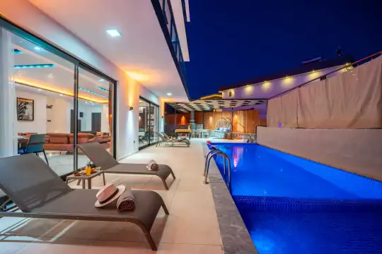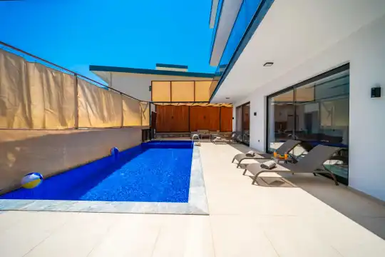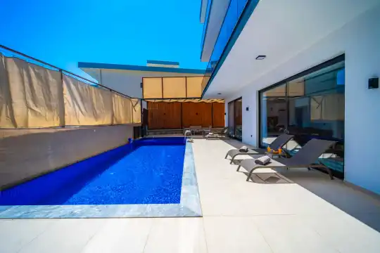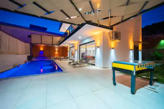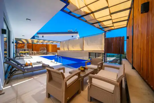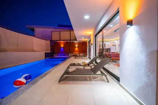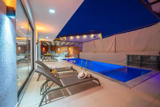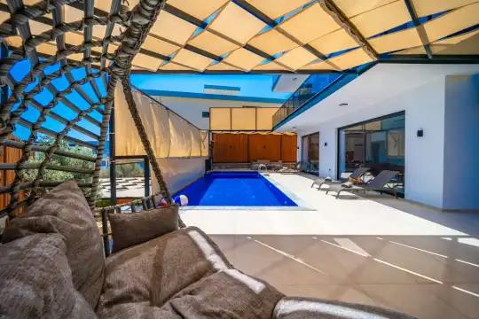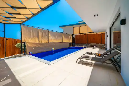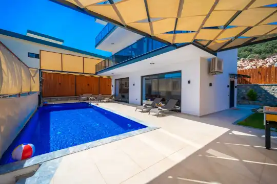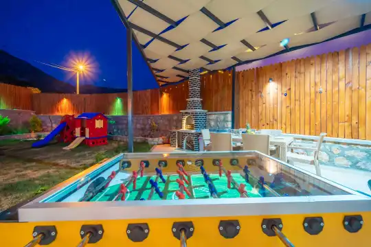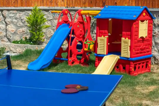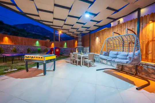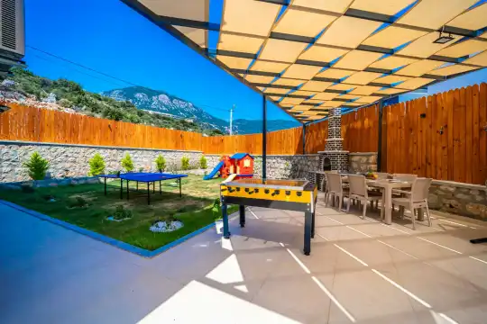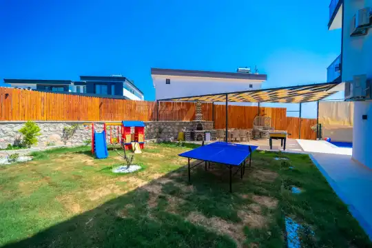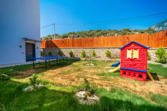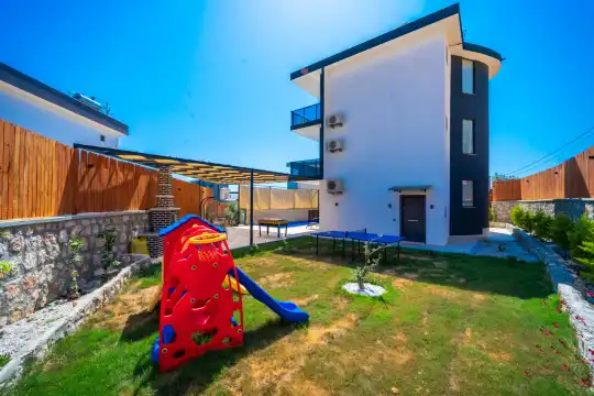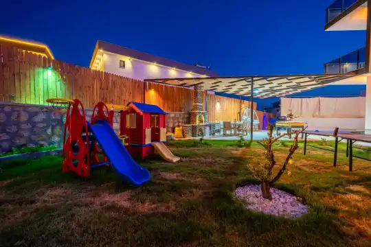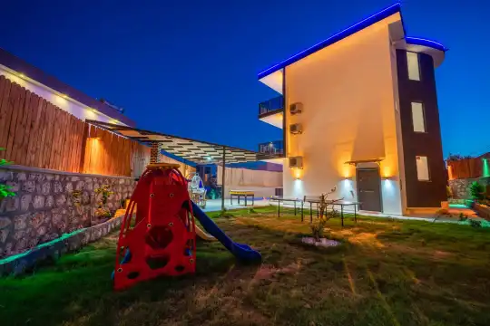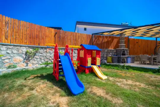 Özellikle çocuklu aileler için ideal olan villamızın bahçesinde, çocuklarınızın güvenle oynayabileceği bir mini oyun parkı bulunmaktadır. Bu özellik sayesinde tatiliniz hem sizin için hem de çocuklarınız için keyifli ve eğlenceli bir deneyim olacaktır.kalkan'ın eşsiz doğasını ve denizini deneyimlemek, lüks ve konforu bir arada yaşamak için hemen bizimle iletişime geçin.