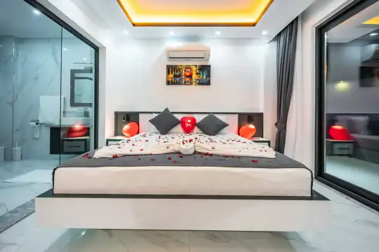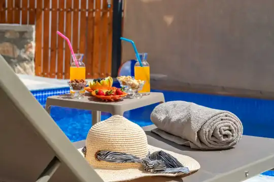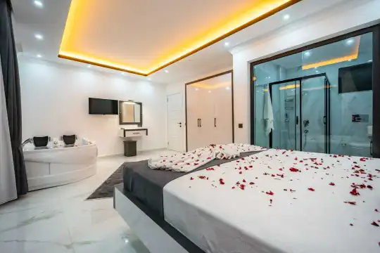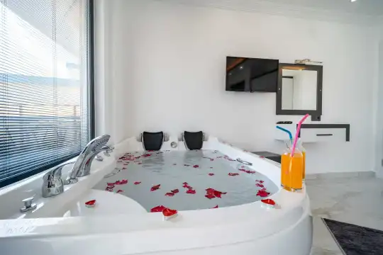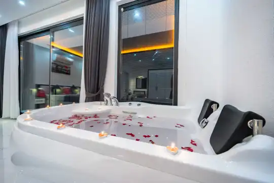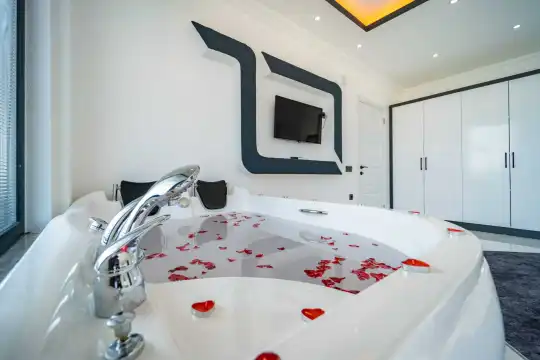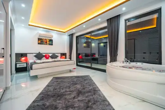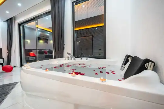 Çift jakuzili villamız, tatilinize lüks ve konfor katmaktadır. Hem iç mekanlar hem de geniş bahçemiz rahatlamanız ve huzur bulmanız için mükemmel bir seçenektir.
