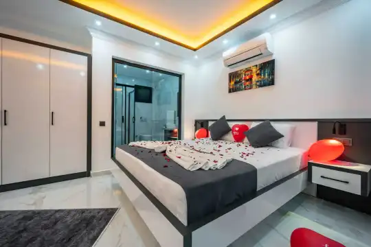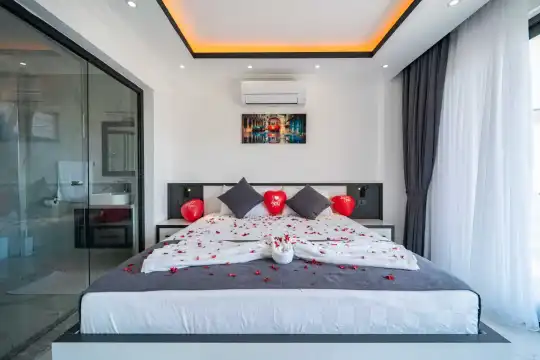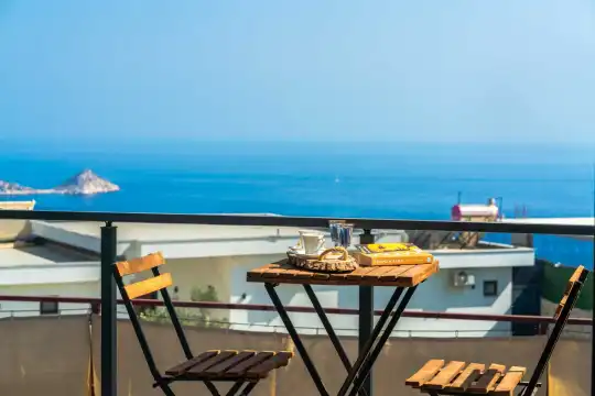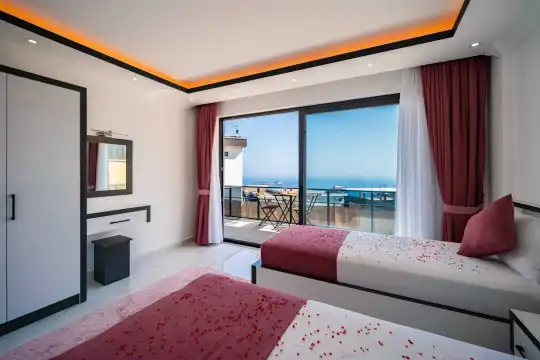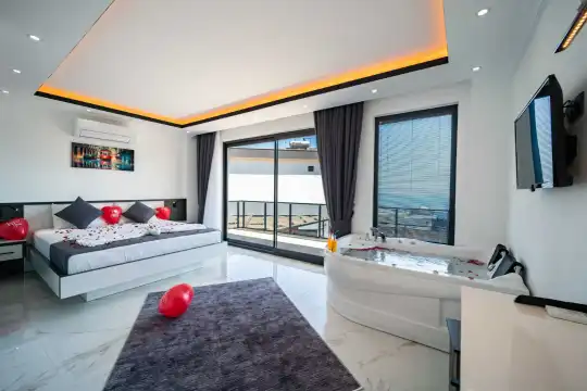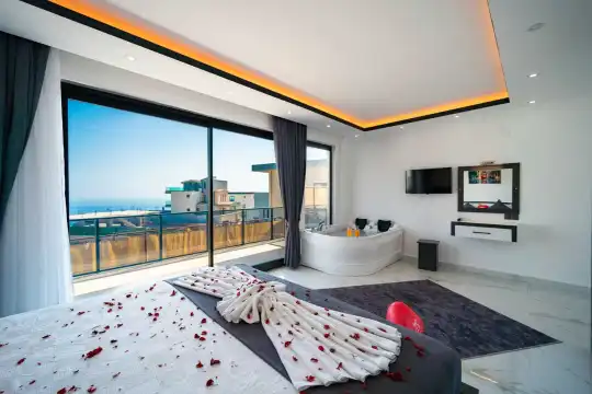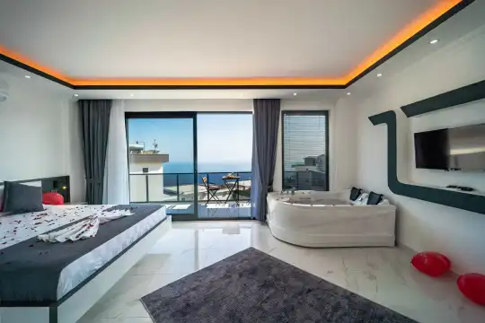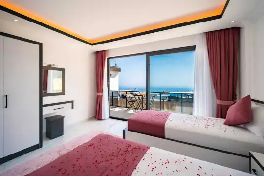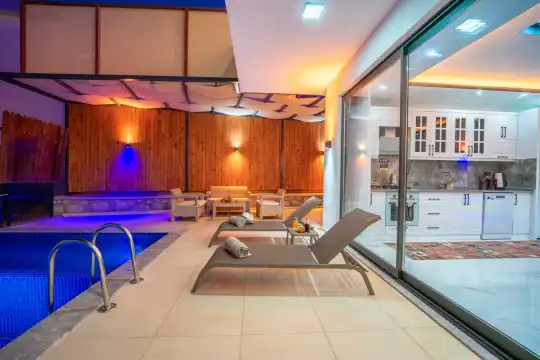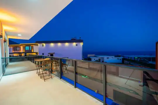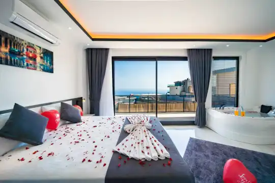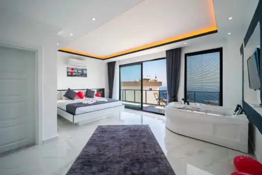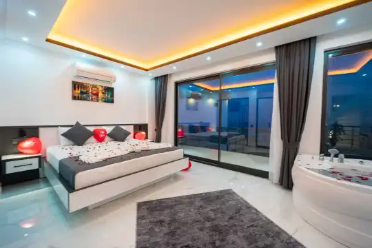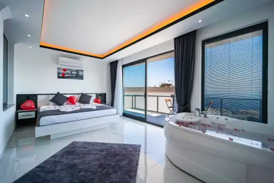Villamızın balkonundan Kalkan'ın eşsiz deniz manzarasını seyretme imkanını sizlere sunuyoruz. Ayrıca hamam, sauna ve spor odası ile vücudunuzu ve zihninizi yenileme fırsatı da sunmaktayız.