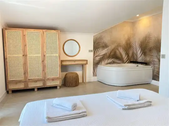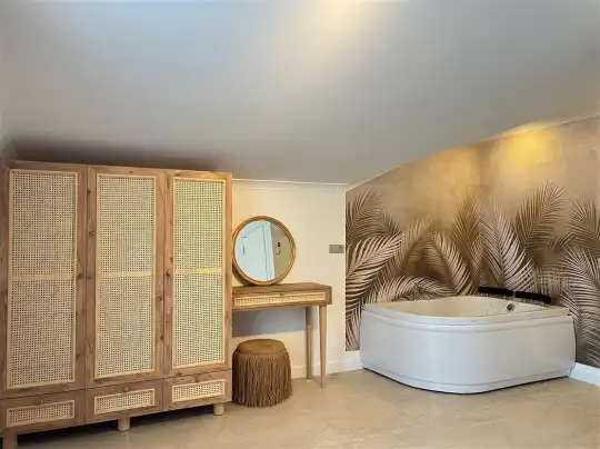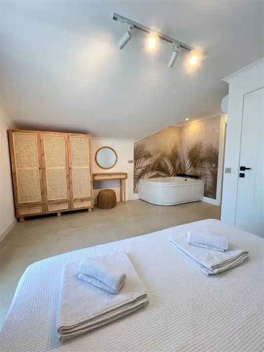 Villa Hygge 1’in hemen yanında yer alan Villa Hygge 2, aynı özelliklerde ve kapasitede olup, iki villa birlikte kalabalık aileler ya da arkadaş grupları için harika bir konaklama seçeneği sunar. Toplamda 12 kişiye kadar konaklama imkânı sağlayan bu villalar, büyük grupların bir arada vakit geçirirken aynı zamanda kendi özel alanlarının tadını çıkarabilmeleri için idealdir.