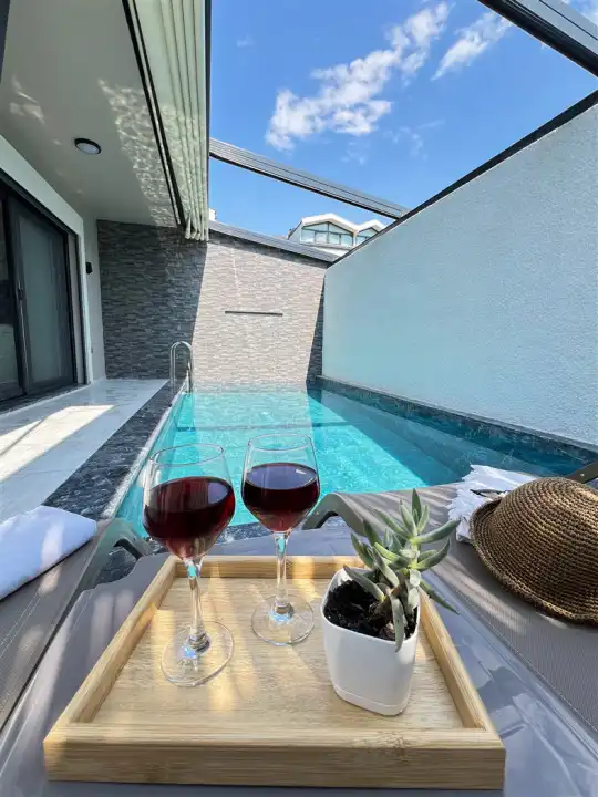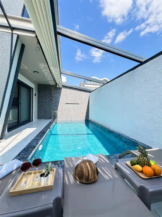 Not: Villamızın havuzunda bulunan ısıtma sistemi opsiyonel olup, günlük ekstra 3,000 TL karşılığında hizmete sunulmaktadır. Isıtma sistemini kullanmak isteyen misafirlerimizin rezervasyon aşamasında ya da villaya girmeden en az 3 gün önceden bilgi vermesi gerekmektedir.