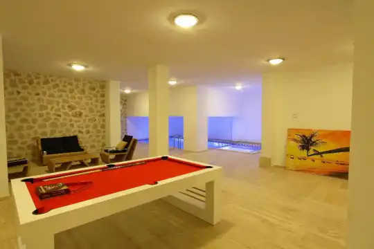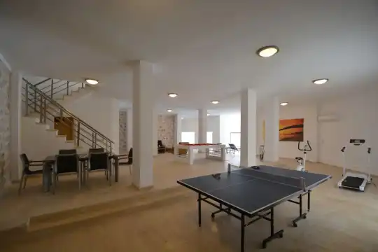 Bodrum katta bulunan spor salonu, bilardo, masa tenisi, koşu bandı ve kondisyon bisikleti gibi olanaklarla donatılmış olup, tüm yılın yorgunluğunu atmanız için kusursuz bir ortam sunar. Lüks ve konforun buluştuğu villamız, huzurlu ve keyif dolu bir tatil için sizleri bekliyor!