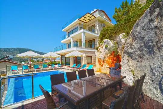 Villamız, eşsiz deniz ve doğa manzarası, modern tasarımı ve geniş yaşam alanlarıyla unutulmaz bir tatil deneyimi sunuyor. 5 suit yatak odasına sahip olan villamız, 10 kişilik konaklama kapasitesiyle geniş aileler ve arkadaş grupları için mükemmel bir seçenektir.