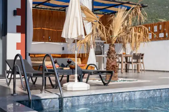 Antalya Kaş Kalkan Çavdır mevkiinde yer alan Villa İron 2, doğanın kalbinde sakin ve romantik bir tatil arayan çiftler için ideal bir seçenektir. Tek yatak odalı ve 2 kişi konaklama kapasiteli villamız, özel yüzme havuzu, geniş terası ve keyifli jakuzi alanıyla unutulmaz bir konaklama deneyimi sunar. Sessiz, huzurlu bir ortamda konfor ve mahremiyeti bir arada arayan misafirler için mükemmel bir tercihtir.