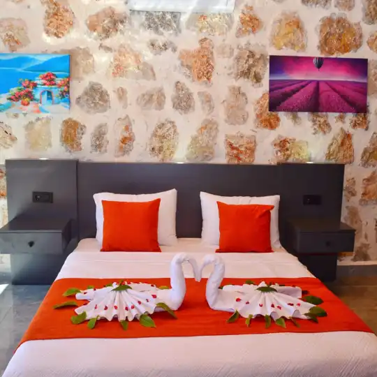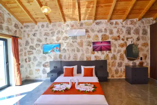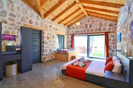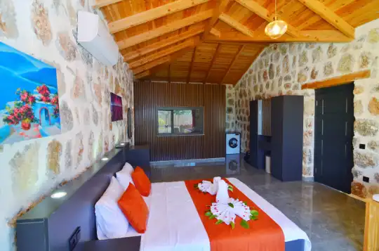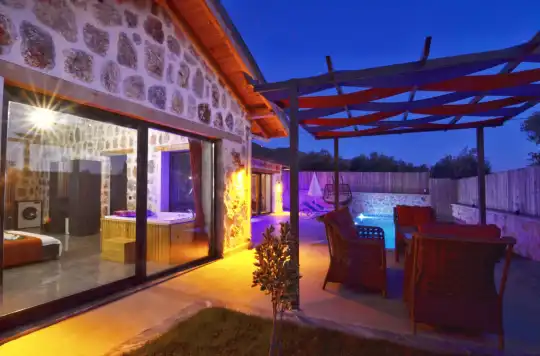 Doğa içinde yer alan, jakuzili ve muhafazakar yapıda olan bu şirin balayı villası, misafirler için her detayın düşünüldüğü bir tatil deneyimi sunar. 1 yatak odasıyla çiftlerin rahatça konaklayabileceği bu villa, özel ve romantik anlar yaşamak isteyenler için ideal bir seçenektir. Muhafazakar yapıya sahip olması, konuklara gizlilik ve huzur sağlar, böylece keyifli bir tatil geçirebilirler. Villada bulunan jakuzi ise konuklara ekstra bir lüks ve konfor sunar, romantik anların tadını çıkarmalarını sağlar. Bu villada tatil geçiren misafirler, doğanın kucağında huzurlu ve unutulmaz bir balayı deneyimi yaşayacaklardır.