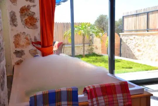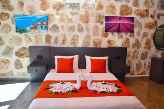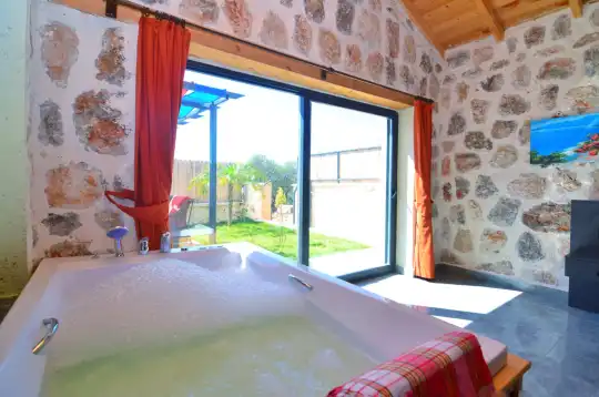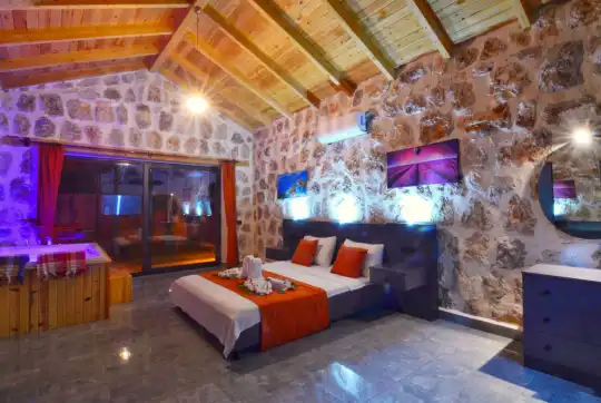 Doğa içinde yer alan, jakuzili ve muhafazakar yapıda olan bu şirin balayı villası, misafirler için her detayın düşünüldüğü bir tatil deneyimi sunar. 1 yatak odasıyla çiftlerin rahatça konaklayabileceği bu villa, özel ve romantik anlar yaşamak isteyenler için ideal bir seçenektir. Muhafazakar yapıya sahip olması, konuklara gizlilik ve huzur sağlar, böylece keyifli bir tatil geçirebilirler. Villada bulunan jakuzi ise konuklara ekstra bir lüks ve konfor sunar, romantik anların tadını çıkarmalarını sağlar. Bu villada tatil geçiren misafirler, doğanın kucağında huzurlu ve unutulmaz bir balayı deneyimi yaşayacaklardır.