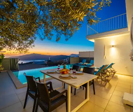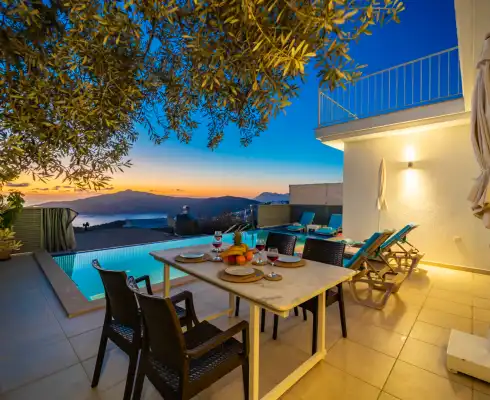 Villa Kayacan Kördere, Kalkan'ın Kördere bölgesinde yer alan ve 4 kişilik konaklama kapasitesi sunan, iki yatak odalı modern bir tatil villasıdır. Şık ve konforlu bir şekilde tasarlanmış olan bu villa, her ayrıntısı düşünülerek tatilinize hazır hale getirildi. İki yatak odasının her birinde jakuzi mevcut olup, birinci yatak odasında ayrıca kapalı kayıt havuzu mevcuttur. Villa Kayacan Kördere'nin korunaklı havuz terası, muhteşem deniz manzarasıyla birleşirken aralık alanı, oturma grubu ve salıncağıyla keyifli vakit geçirmeniz için ideal. Hem balayı çiftleri hem de 4 kişilik aileler için huzurlu ve özel bir tatil sunuyor