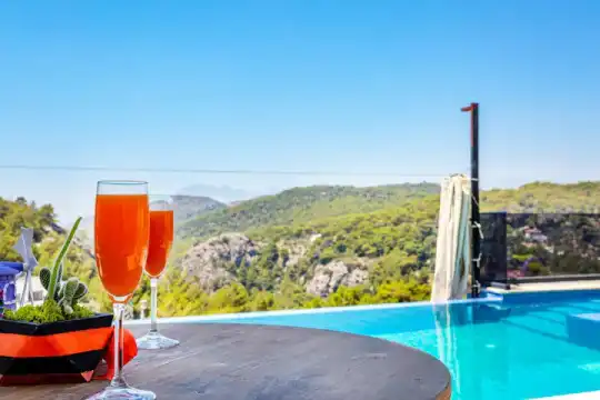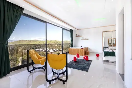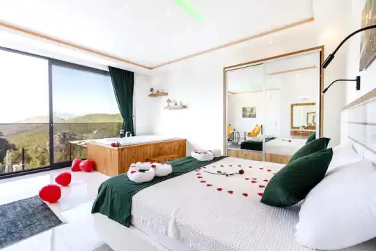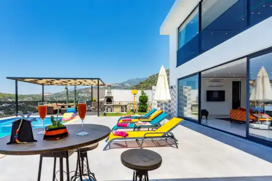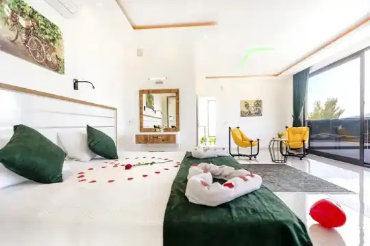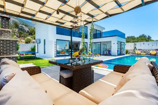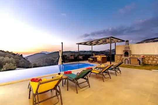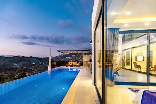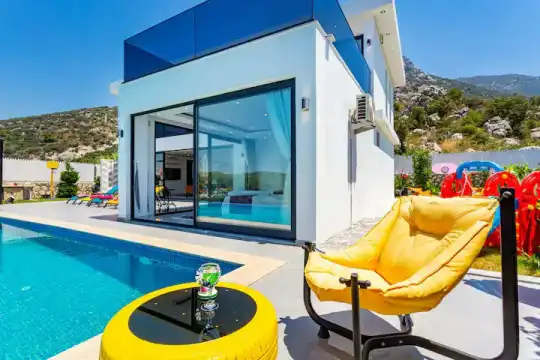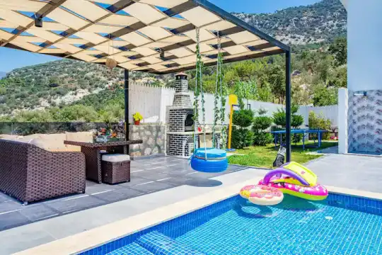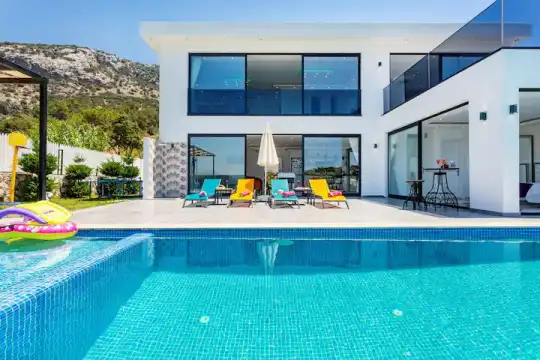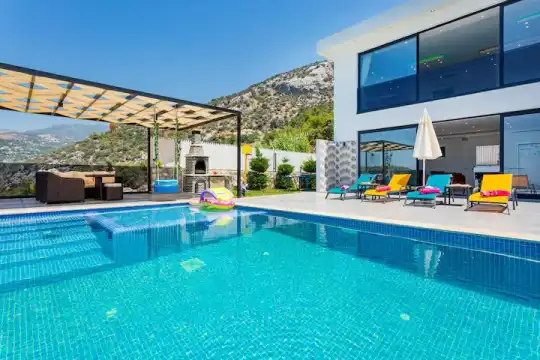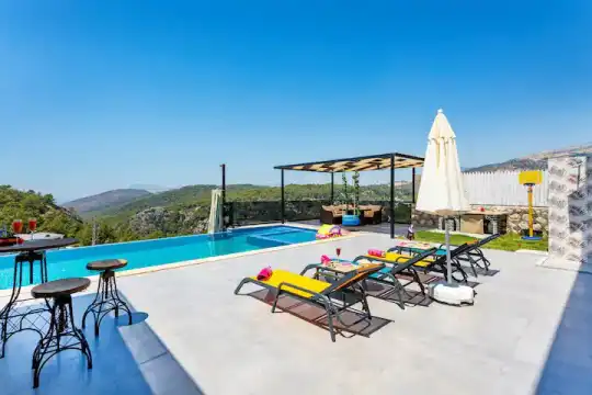 Kalkan'ın Akbel mevkiinde yer alan bu özel havuzlu villa, muhteşem doğa manzarasıyla dikkat çekiyor. Şehir merkezine araçla sadece 3 dakika mesafede bulunan villa, aynı zamanda markete de yürüme mesafesindedir.