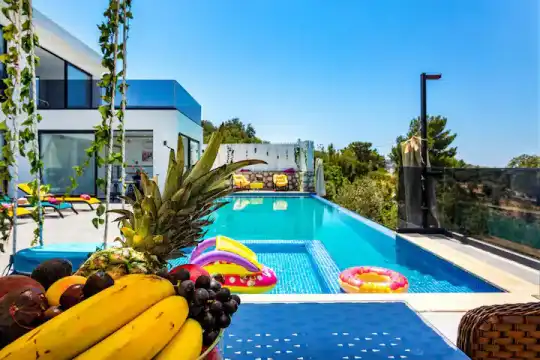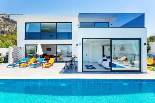 Havuzda yüzerek harika yaz gün batımlarını izleyebilir, bahçede yaz akşamlarınızı keyifli sofralarla süsleyebilirsiniz. Modern tasarımı ve ferah iç mekanıyla bu villa, mükemmel bir tatil deneyimi sunmaktadır.