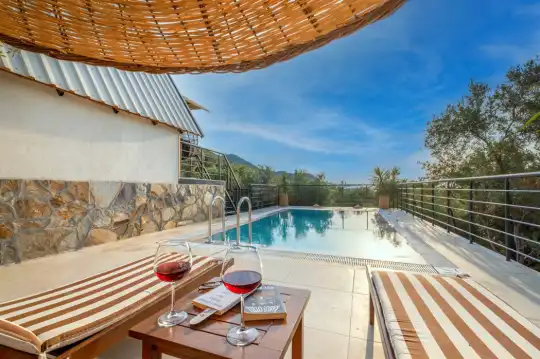 Fethiye Pazaryeri mahallesinde konumlanan Villa Lavinya, korunaklı havuzu ve muhteşem deniz manzarasıyla siz değerli misafirlerimize keyifli ve huzurlu bir tatil sunmaktadır. Zeytin ağaçları arasında bulunan villamız, bol oksijen ve kuş sesleriyle size eşsiz bir uyanma deneyimi yaşatır. Villa, balayı ve çekirdek aileler için özel olarak tasarlanmıştır. Merkezi konumda bulunan villamız, Ölüdeniz plajına 10 km ve şehir merkezine ise 5 km mesafededir. Villamıza ulaşım sağlayan yolun son 100 metresi stabilize bir yoldur.